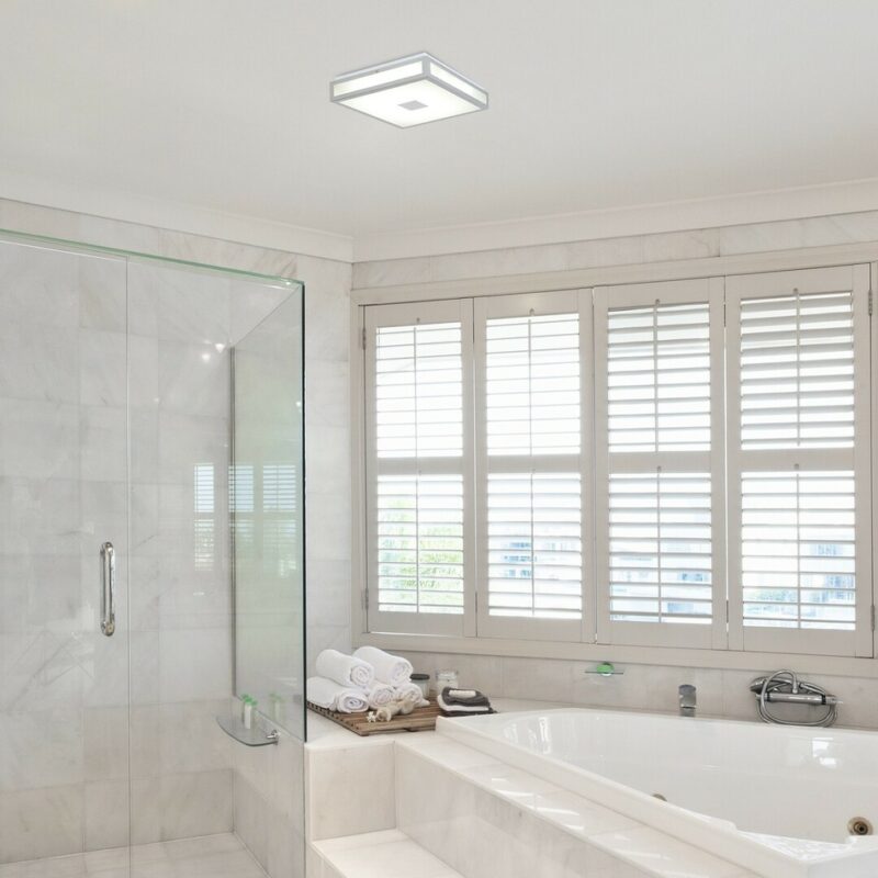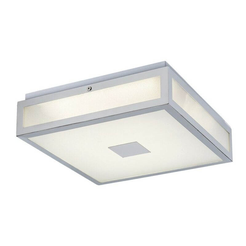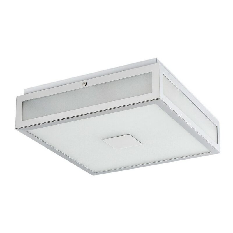 Kúpeľňové stropné svietidlo Zoya v retro štýle ponúka praktické a priestorovo úsporné riešenie osvetlenia kúpeľne. Chrómovaný štvorcový model je vyrobený z kovu a je doplnený bielym skleneným tienidlom. Vďaka svojmu čistému dizajnu a nenápadným farbám je možné Zoya dokonale zakomponovať do mnohých moderných kúpeľní.Stropné svietidlo má zabudovaný LED svetelný zdroj energetickej triedy F s výkonom 18 W, svietivosťou 1390 lúmenov s tienidlom, 1850 lúmenov bez tienidla. Zdroj svetla s farebnou teplotou 4000 K má veľmi dlhú životnosť: Bude vám slúžiť až 30 000 hodín!Svietidlo Zoya osvetľuje prirodzeným bielym svetlom, vytvára v kúpeľni moderný, čistý efekt. Krytie IP44 zaručuje, že tento model je chránený proti vniknutiu pevných predmetov väčších ako 1 mm a proti striekajúcej vode z akéhokoľvek smeru. Rozmer stropného svietidla je 300 x 300 mm, vzdialenosť od stropu 90 mm.