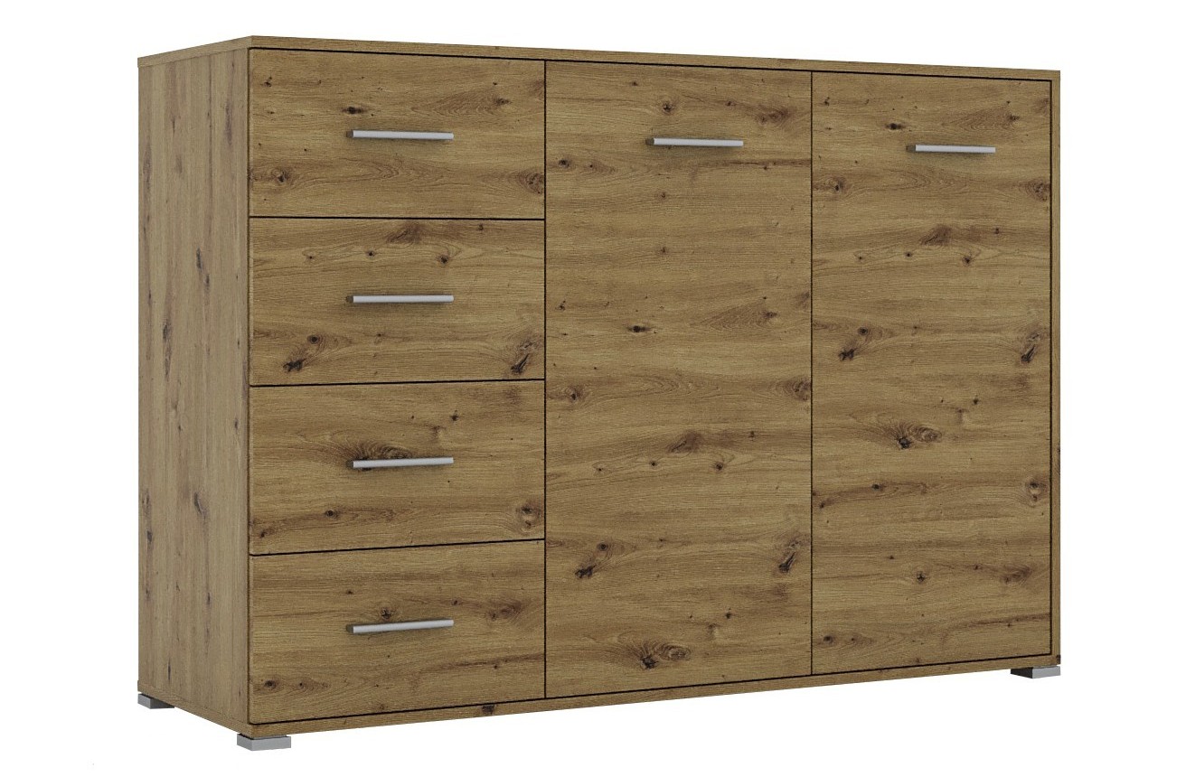Kombinovaná komoda RADAN 2D4S je funkčný a moderný nábytok vhodný do každého interiéru. Táto komoda je vyrobená z LTD laminovaného materiálu. Farba dub Artisan dodáva komode príjemný a elegantný vzhľad. Komoda disponuje dvoma dvierkami za ktorými sú dve police a štyrmi zásuvkami.Rozmery komody: Š135 / V95 / H45 cm. Podrobné rozmery v nákrese.Súčasťou sú aj uchytky, ktoré umožňujú pohodlné otváranie a zatváranie dverí a zásuviek. Táto kombinovaná komoda je skvelou voľbou pre tých, ktorí hľadajú praktický a moderný nábytok do svojho obývacieho priestoru.Komoda je dodávaná v demonte, čo umožňuje jednoduchú montáž doma.