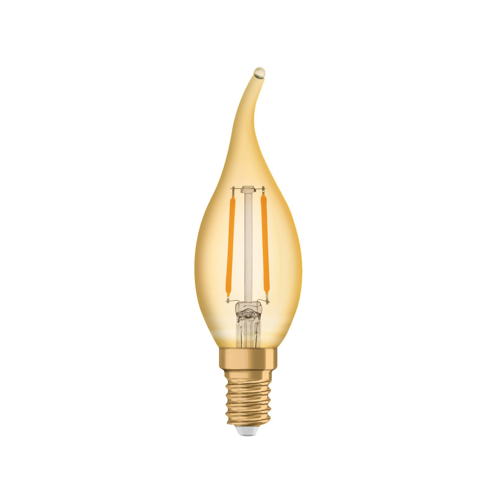 LED žiarovka E14, 2,5 W, zlatáLED žiarovka Essence Ambiente s päticou E14 vo vzhľade Windblast a s viditeľnými vláknami je vhodná najmä na použitie v lustroch a svietidlách bez tienidla. Vďaka svojmu dizajnu je pútavá a dekoratívna, žiarovka zo zlatého číreho skla v kombinácii s veľmi teplou farbou svetla vytvára útulnú atmosféru.- teplá biela (2 400 K)