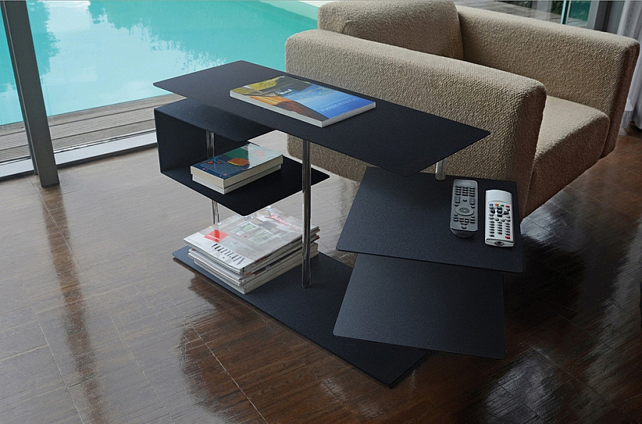 Jeho priestor dosahuje novú dimenziu vďaka tomu, že má dve otočné odkladacie priehradky. Či už ide o noviny, ovládač od TV, notebook alebo pohár na víno, tento stolík je ideálnym spoločníkom. Je zo všetkých strán otvorený a dostupný.