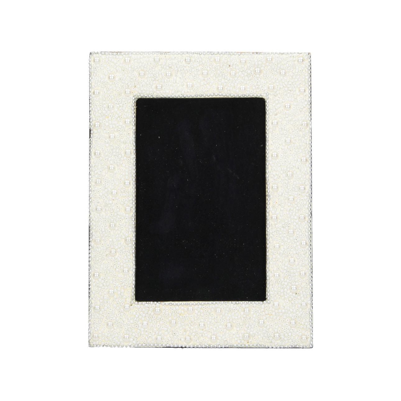 Dekoračný rám zdobený korálikmi a perlami.Dokonalé miesto na spomienky zachované vo fotografii. Perfektný nápad na elegantný darček.Rozmery: šírka 15,5 cm, hĺbka 1,5 cm, výška 20,5 cm., miesto na fotku 10x15cm.Materiál: korálkyFarba: perla