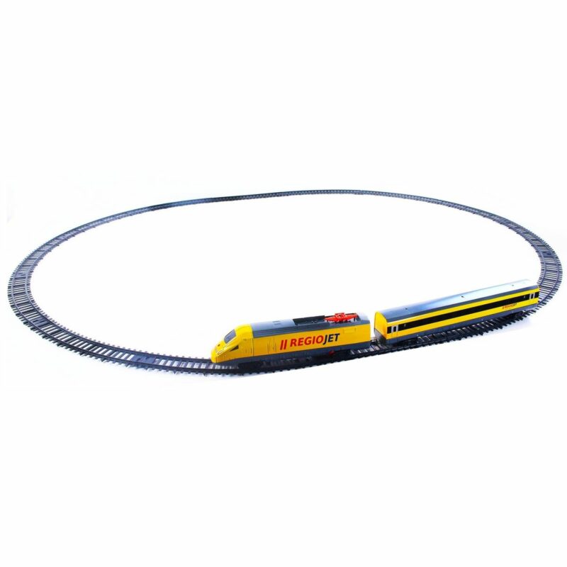 Tento set originálnej lokomotívy a vagónu spoločnosti RegioJet sa bude páčiť každému fanúšikovi vláčikov. V sade nájdete aj 12 zahnutých a 6 rovných koľají, s ktorými je možné zostaviť koľajisko až do veľkosti 147 x 121 cm. Rozstup je 2,1 cm.