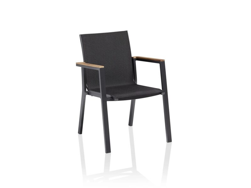 Rasmus záhradná jedálenská stolička s teakovými podrúčkami antracitová