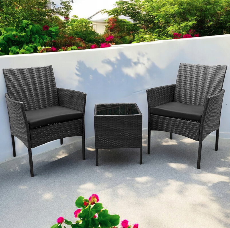 Súprava záhradného nábytku NM04 je ideálnym riešením pre každého, kto si chce užívať pohodlie a štýl na svojej terase, záhrade či balkóne. Set pozostáva z dvoch pohodlných kresiel, stolíka s odolnou sklenenou doskou a mäkkých vankúšov, ktoré zaručujú maximálny komfort aj pri dlhšom oddychu. Stabilná konštrukcia z kovu potiahnutého technoratanom je odolná voči poveternostným vplyvom a UV žiareniu – farba nevybledne ani po čase. Vankúše sú vodoodolné a ľahko sa udržiavajú, rovnako ako celý nábytok.