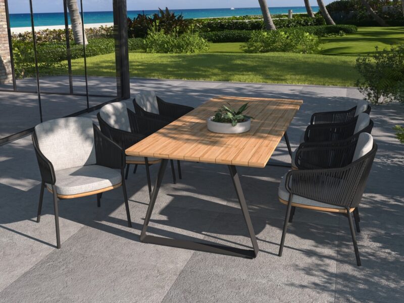 Očarujúca stolová súprava Ravello zaujme svojim dizajnom a kvalitným teakovým drevom.