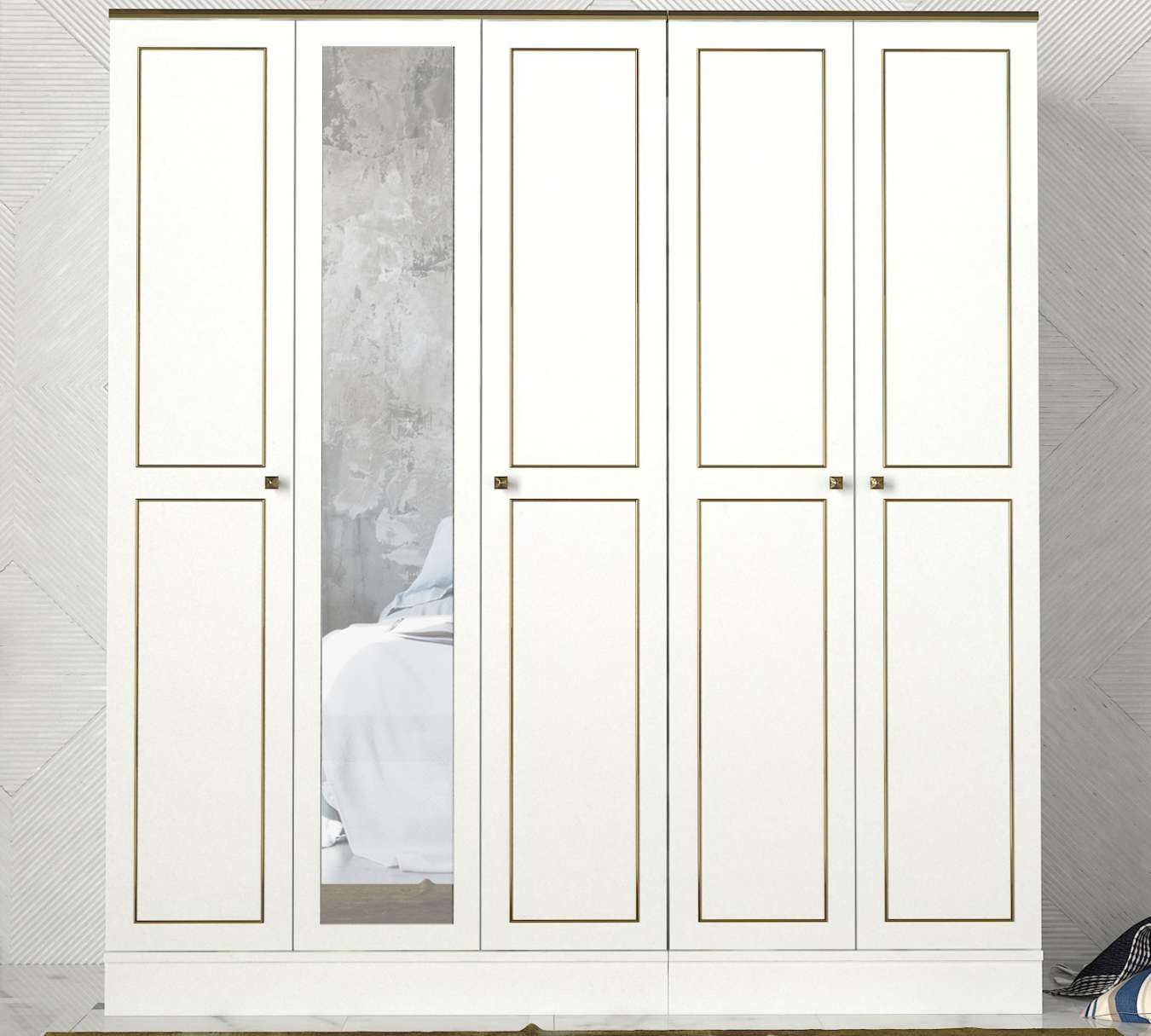 Šatníková skriňa RAVEN 5DElegantná a priestranná šatníková skriňa RAVEN 5D je ideálnym doplnkom pre vašu spálňu. Tento štýlový kus nábytku je vyrobený z kvalitných materiálov LTD a skla, čo zaisťuje jeho dlhú životnosť a atraktívny vzhľad.Rozmer: 175 x 194 x 47.2 cmMateriál: LTD a skloFarba: BielaVybavenie: 3 šatníkové tyče, 4 police a zrkadloTvar: ObdĺžnikovýPočet dverí: 5Počet políc: 4Hrúbka materiálu: 18 mmDodatočné informácie: Dodávame v demonteŠatníková skriňa RAVEN 5D vyniká svojim elegantným dizajnom v bielej farbe, ktorý dodá vašej spálni svieži a moderný vzhľad. Praktické vnútorné usporiadanie s tromi šatníkovými tyčami, štyrmi policami a zrkadlom ponúka dostatok úložného priestoru pre vaše oblečenie a ďalšie predmety, zatiaľ čo zrkadlo opticky zväčšuje priestor a dodáva interiéru hĺbku.Neváhajte a kúpte si šatníkovú skriňu RAVEN 5D ešte dnes. Tento štýlový a funkčný kus nábytku pridá vašej spálni eleganciu a praktickosť v jednom!
