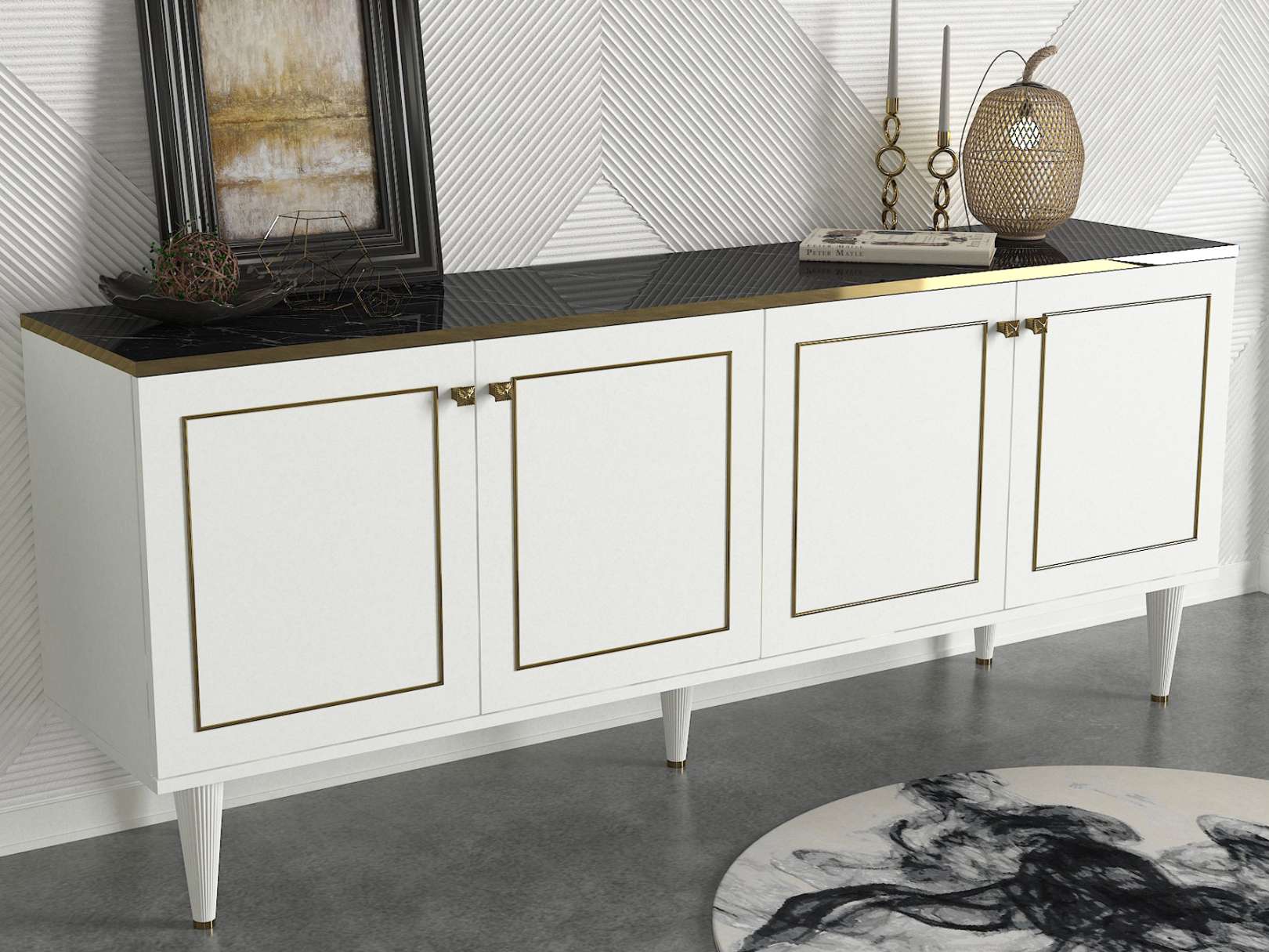 Domovská stránka » Katalóg » RAVEN luxusná komoda, biela/čierny mramor