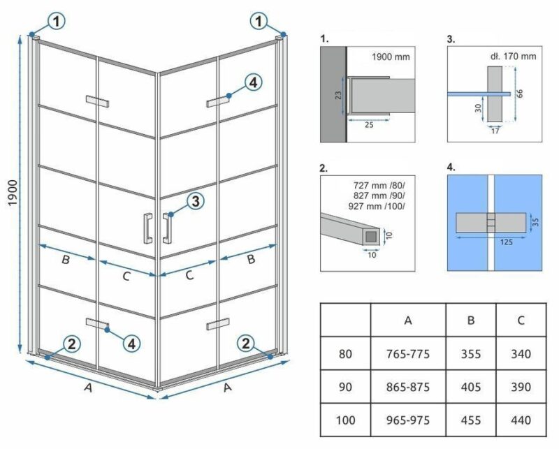 Sprchovací kút Molier sa skladá z dvoch sklenených dverí, zakončených elegantnými matne čiernymi prvkami. Tento model je ideálnym riešením pre malé a nepohodlné kúpeľne. Dvere je možné priklopiť k stene. To dáva neobmedzené možnosti v praktickom využití kúpeľne. Sklo v kabíne je nielen bezpečné, ale aj praktické, vďaka povrchovej úprave Easy Clean . Vďaka tejto modernej technológii sa na skle neusadzuje vodný kameň a čistenie nevyžaduje použitie silných prostriedkov.