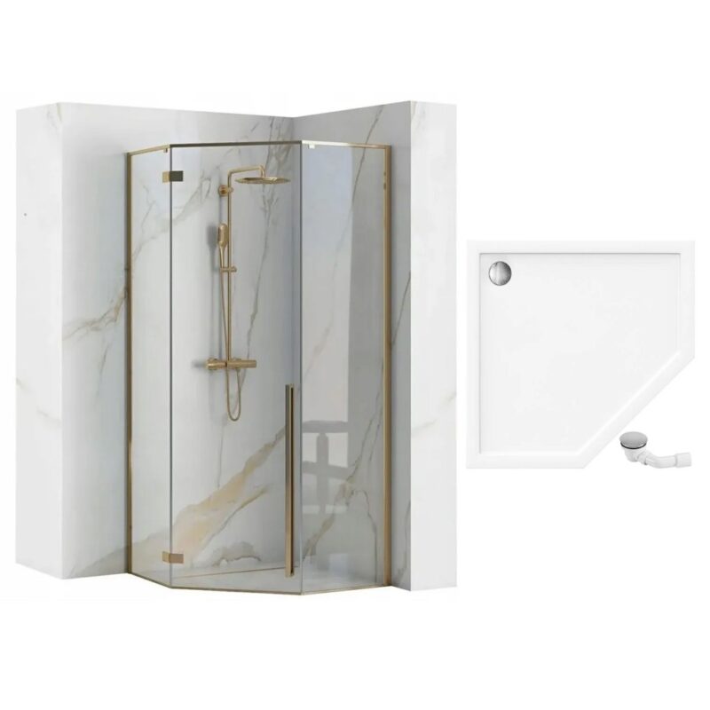 REA/S – Sprchovací kút DIAMOND 90×90 – zlatá So sprchovou vaničkou Diamond KPL-04904