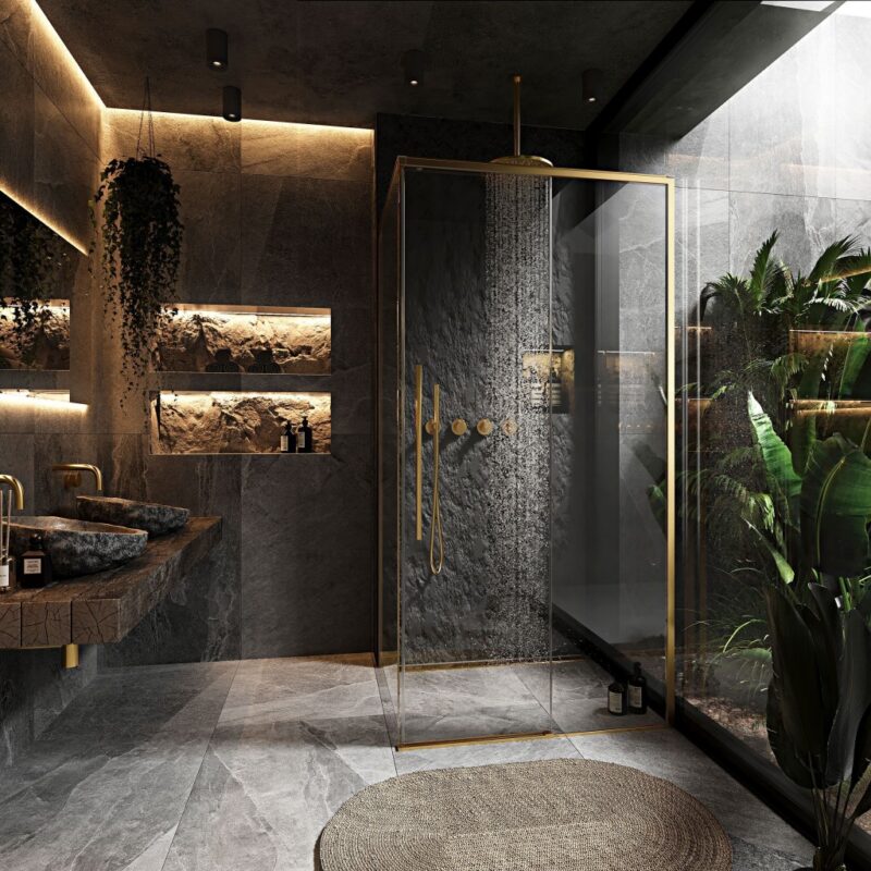 REA – Sprchovací kút SOLAR – zlatý Brush 90×90 Bez sprchovej vaničky REA-K9500