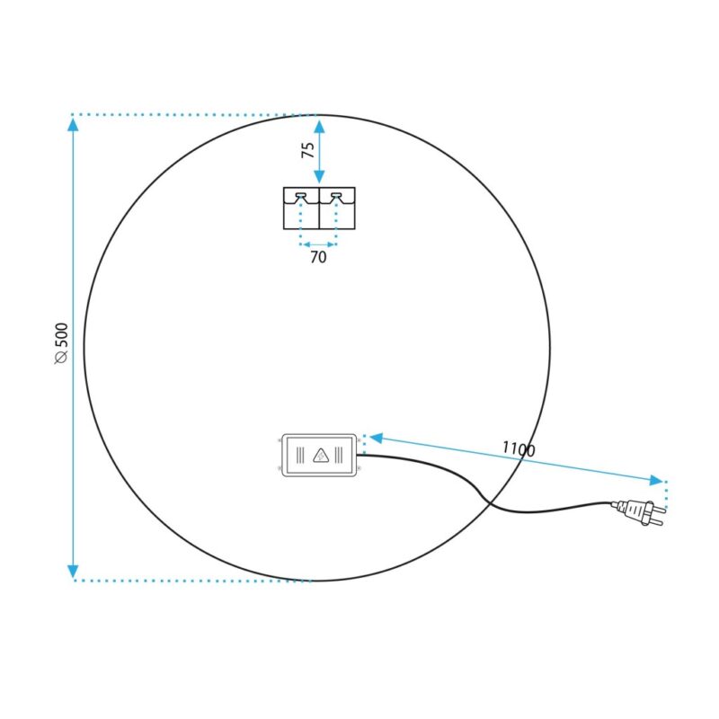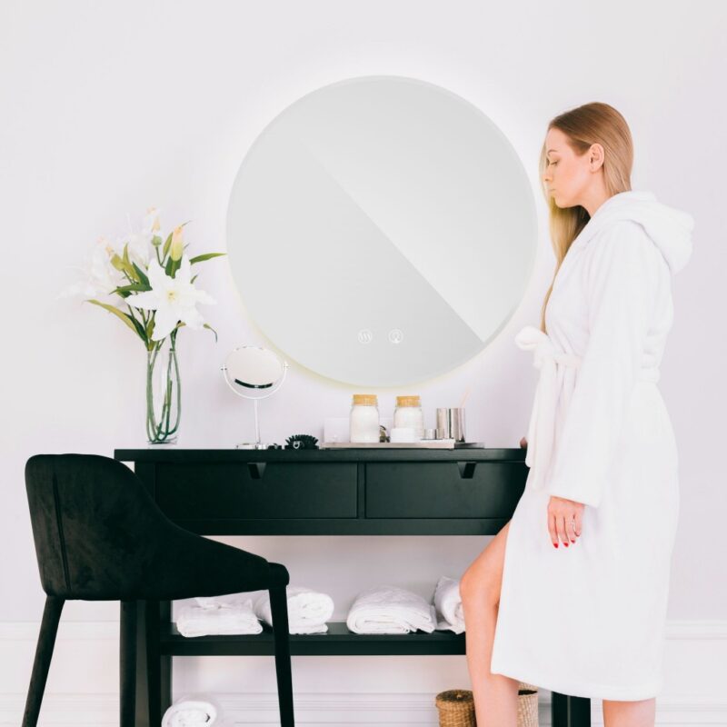 Okrúhle zrkadlo s LED podsvietením je ideálny pre tých, ktorí oceňujú pohodlie pri používaní a moderný dizajn. Zrkadlo je vyrobené z najkvalitnejších materiálov, vyzerá perfektne a je veľmi odolné. Má na výber z troch farieb LED svetlá, ktoré je možné meniť dotykom – teplé, neutrálne a studené, a tiež funkciu ohrevu, ktorá zabraňuje zahmlievaniu povrchu. Dotykový spínač umiestnený na povrchu zrkadla svieti na modro, keď je funkcia aktívna. Biely napájací kábel s dĺžkou 110 cm.(GT) Ean: 5902557381692