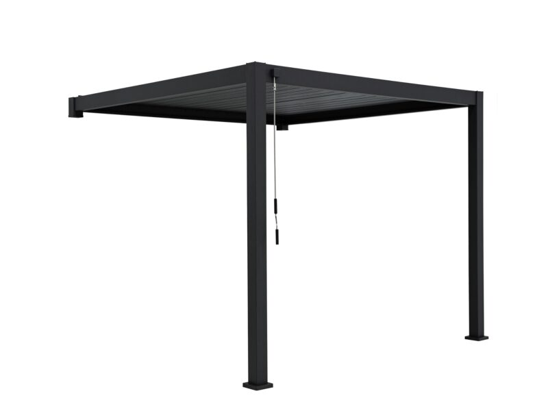 Praktická Reflect stena v antracitovej farbe s rozmermi 3×4 metra ponúka estetický prvok do exteriéru s nastaviteľnými strešnými lamelami a jednoduchou inštaláciou