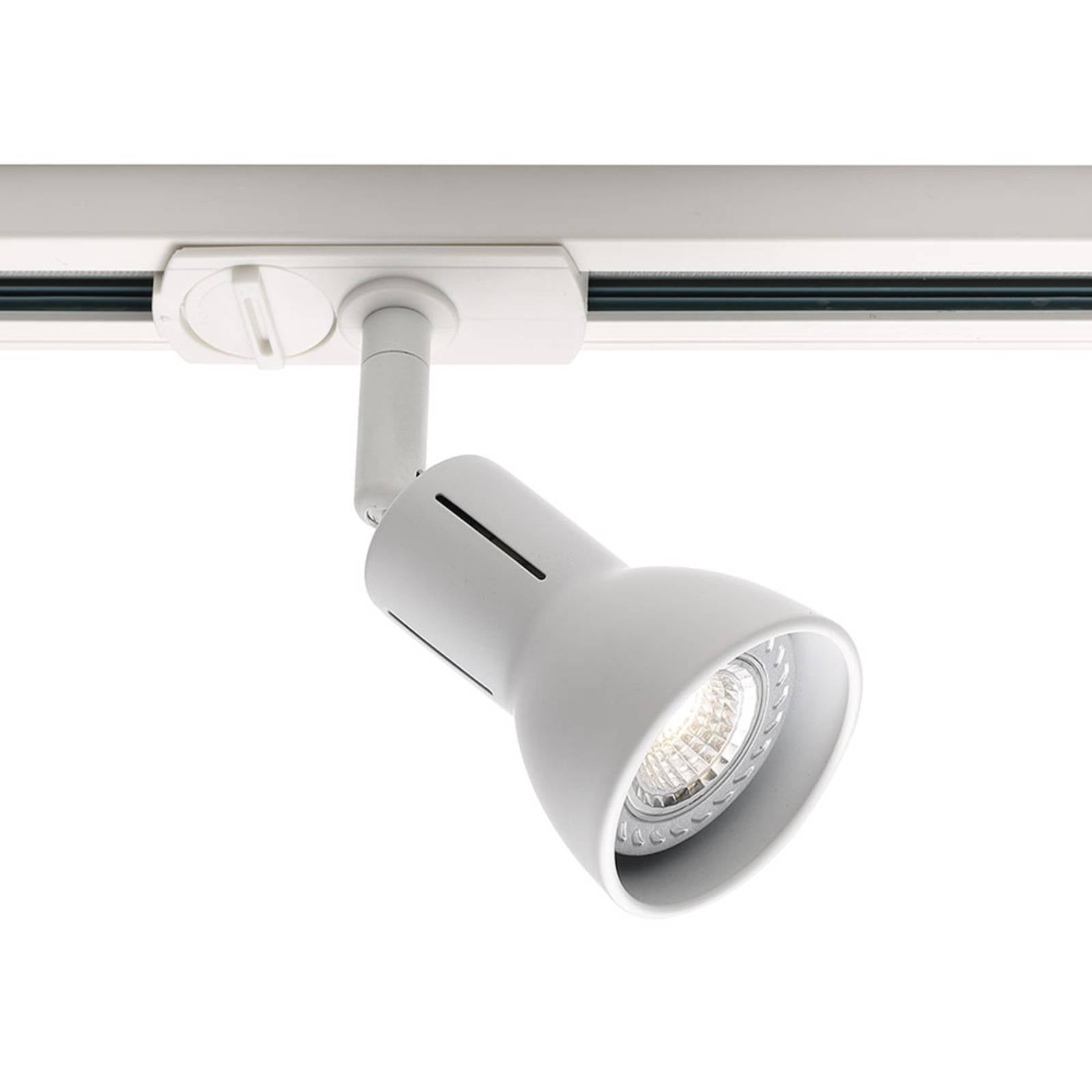 Jednoduchý reflektor 8612 na prevádzku v jednookruhovom koľajnicovom systéme Link Reflektor z kovu a plastu v jednoduchom tvare reflektora je vizuálne nenápadnou voľbou na osvetlenie interiéru pomocou jednookruhového koľajnicového systému Link. Posuvná koľajnica, nosná tyč a hlava reflektora s okrúhlym tienidlom sú v jednej farbe. Reflektor sa dá vďaka otočnému kĺbu nastaviť podľa potreby a je možné doň umiestniť žiarovku GU10 podľa vlastného výberu.