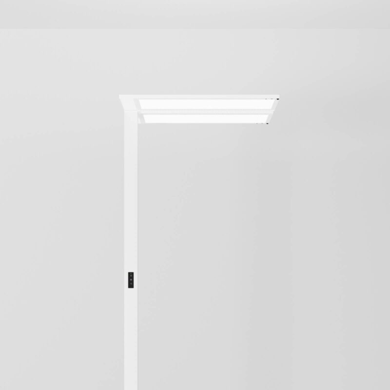 Stojacia lampa Lightpad LED – dvojlampa na osvetlenie dvoch stolov zo strany Dvojlampa Lightpad LED je vyrobená z bieleho lakovaného hliníka a má podstavec v tvare písmena U. Vďaka modulom MINERGIE® certifikovaným výrobcom Regent a UGR<;19 je ideálnou voľbou pre efektívne pracovné osvetlenie. Sú nainštalované dva detektory pohybu a dva senzory denného svetla SensoDim®. S funkciou "laditeľnej bielej": farbu svetla možno prispôsobiť priebehu denného svetla prostredníctvom bezplatne stiahnuteľnej aplikácie Mylights pre Android a iOS, t. j. ak sa miestnosť k večeru stmieva, farbu svetla možno nastaviť jasnejšie. - ovládacie prvky a ovládacie zariadenie v cene - dvojité asymetrické rozloženie svetla pre rovnomerné osvetlenie bez viacnásobných tieňov - rozloženie svetla: nepriamy (70 %), priamy (30 %) - 3 m sieťový kábel s bezpečnostnou zástrčkou IEC 7/7 Euro - tenký dizajn hlavy - dizajn: schneider schumacher, Frankfurt nad Mohanom