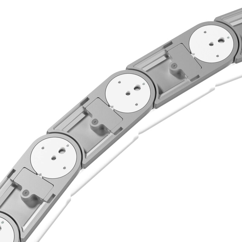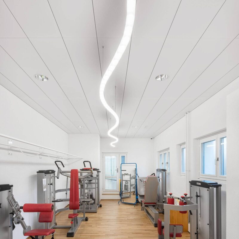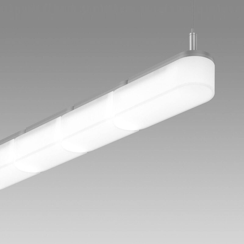 Svietidlo Wiggle LED na povrchovú montáž s možnosťou voľného navrhovania Svietidlo Wiggle s lištou možno navrhnúť buď ako súvislú líniu, alebo ako zakrivenú krivku vďaka jednotlivým prvkom, ktoré možno voči sebe otáčať. Wiggle LED pozostáva z hliníkového profilu striebornej farby s opálovým difúzorom PMMA a vyžaruje jasné svetlo zabudovaných LED diód priamo do miestnosti. Ovládacie zariadenie (stmievateľné DALI) je už súčasťou dodávky. Poznámka: Stropné alebo nástenné svietidlo Wiggle možno pomocou samostatne dostupnej závesnej súpravy premeniť na závesné svietidlo. – Odolnosť proti nárazu: IK08 – štyri montážne body (štyri montážne konzoly)