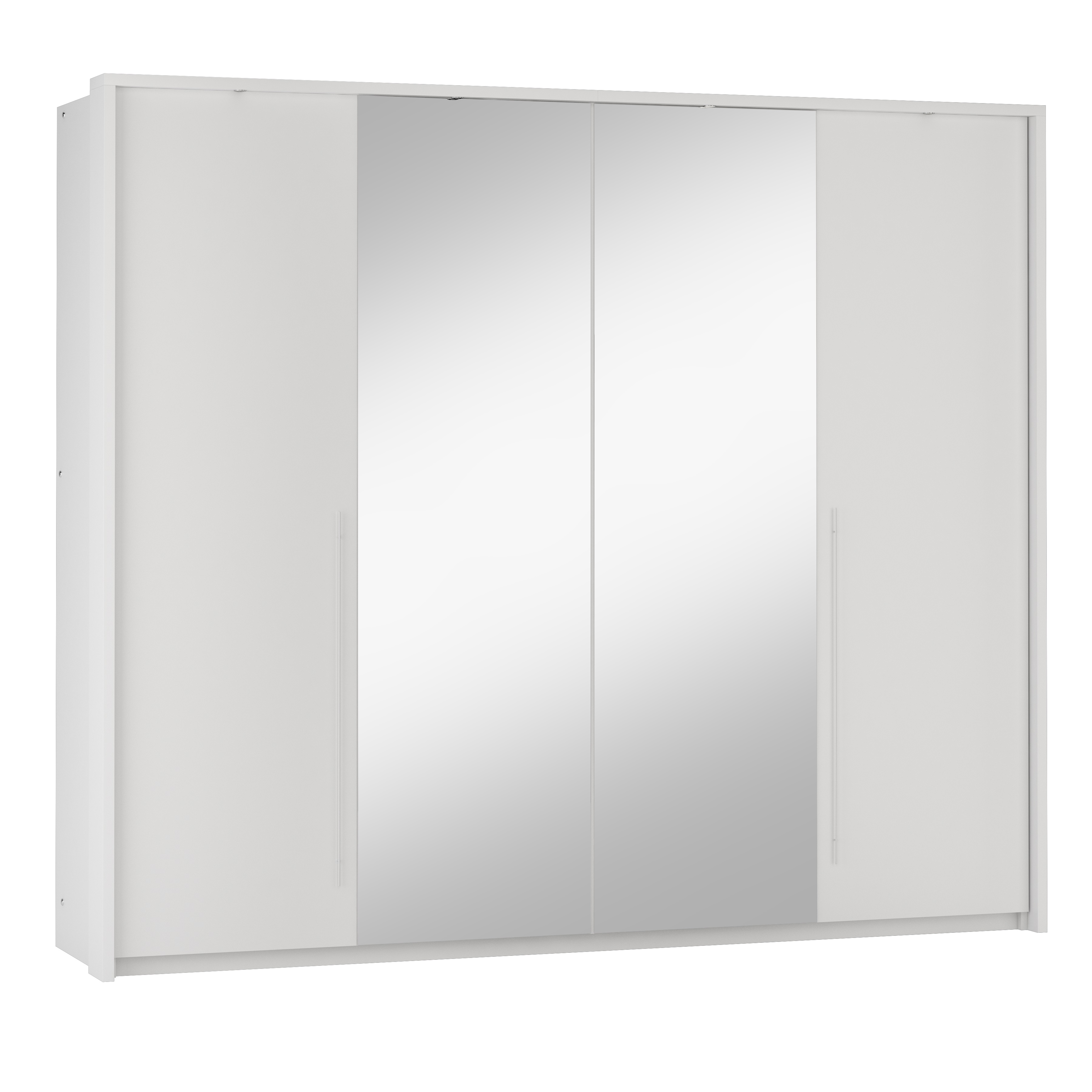 Moderná šatníková skriňa REMA 255 je unikátny nábytok v elegantnom prevedení. Táto skriňa má výnimočné a netypické otváranie dverí (viď. obrázok) s využitím väčších nenápadných rukovätí v striebornej farbe. Zalomenie dverí využíva kvalitné kovanie HETTICH.Stabilná konštrukcia tvorí základ skrine. Dvere sú členené a vyrobené z 4 častí. Stredové 2 časti majú zrkadlo. Skriňa je doplnená efektným osvetlením, ktoré je zahrnuté v cene.Skriňa REMA 255 je vyrobená v modernom dizajnovom prevedení v žiadanej bielej farbe. Svoje využitie nájde v spálni aj inej miestnosti. Ponúka dostatočný priestor na uloženie Vášho oblečenia. Úložný priestor je členený na poličkový a vešiakový. Po bokoch skrine sú z každej strany 4 poličky. Stredová časť obsahuje 2 vešiakové tyče.Skriňa je vyrobená z kvalitnej LTD dosky.Rozmery (š/v/h): 255 x 219 x 65 cmDodávame v demonte.