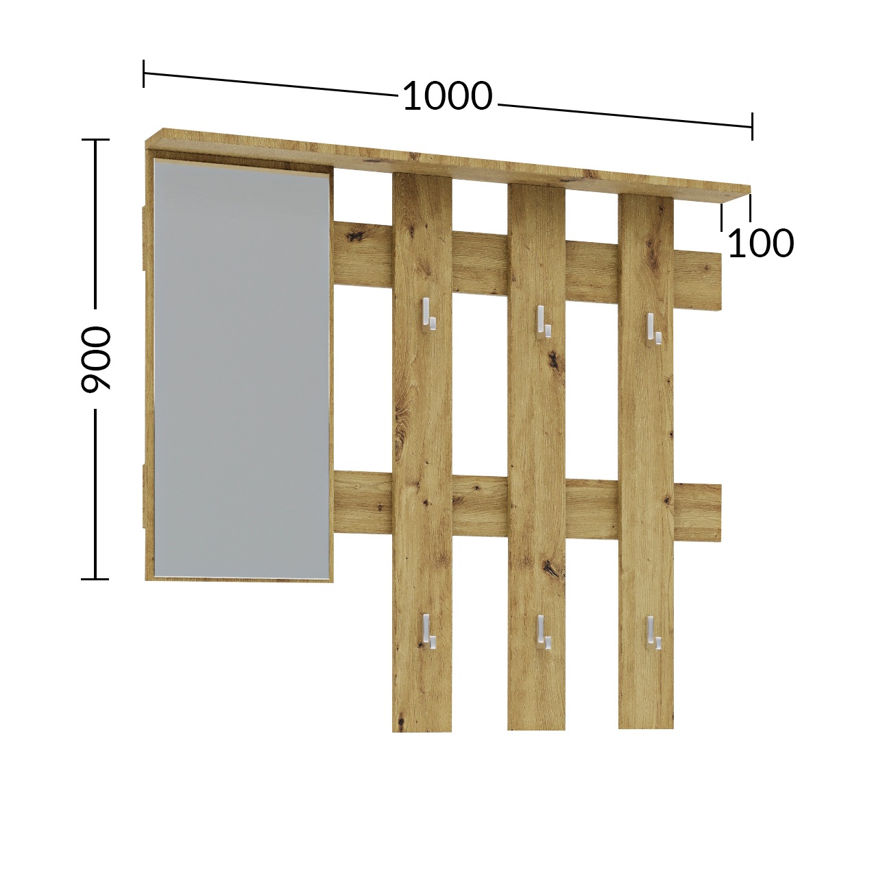 REMO je moderný nábytok do predsiene či chodby. Vešiakový panel so zrkadlom RENO je v štýlovom prevedení. Je vhodný aj do menšej predsiene či chodby.Nábytok je vyrobený z LTD dosiek, ktoré sú nenáročné na údržbu. Farebné prevedenie: dub Artisan.Rozmery:výška: 90 cmšírka: 100 cmhĺbka: 10 cmDodávame v demontovanom stave.