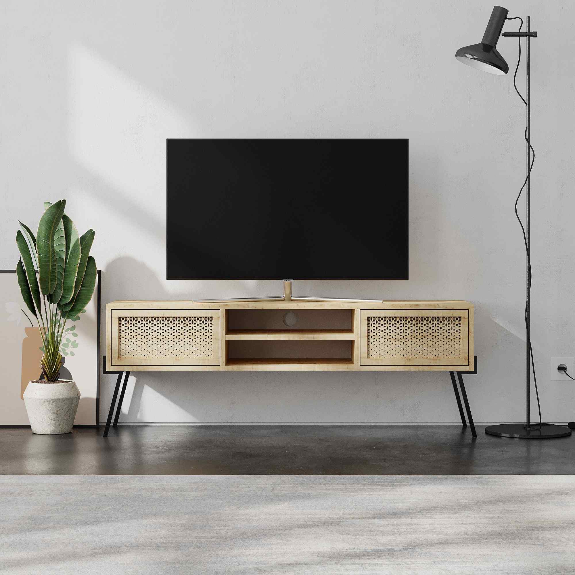 TV stolík KYTIS: Vintage elegancia v nádhernom prevedení duba Uvádzame vám KYTIS – TV stolík, ktorý kombinuje retro a vintage dizajn s praktickými funkciami pre vašu obývaciu izbu. V nádhernom odtieni duba s jemnými detailmi z lesklého kovu tento stolík predstavuje skvost v oblasti nábytku. Typ tovaru: TV stolík Materiál: Kvalitný melamín, VT laminát doplnený o prvky z kovu Rozmer: 50.7 x 140 x 35.6 cm – dokonale sa zmestí do každej obývacej izby Farba: Hrejivý dub, ktorý dodá interiéru teplý a príjemný pocit Funkcie: Push to open – pre ľahké a pohodlné otváranie Vybavenie: Priestranný regál a dvoje dvere skrinky pre všetky vaše multimédiá Štýl: Vintage a retro – vdýchnite svojej obývačke nádych starých časov< /li> Tvar: Obdĺžnikový s čistými líniami Hrúbka materiálu: 18mm garantuje robustnosť a dlhú životnosť < strong>Dodatočné informácie: Prekrásne detaily z lesklého kovu TV stolík KYTIS nielen splní všetky vaše potreby ohľadom úložného priestoru, ale stane sa aj neprehliadnuteľným dizajnovým prvkom vašej obývačky. Urobte svoj interiér neodolateľným s týmto skvelým kúskom nábytku.