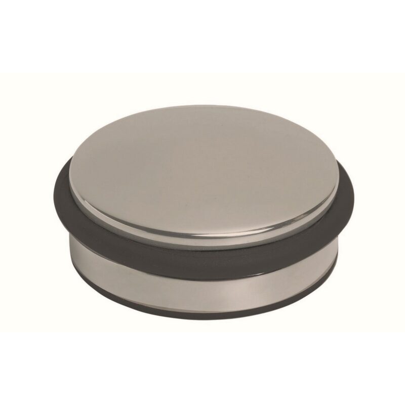 Nerezová dverná zarážka „PUK“ bez vŕtania, ktorá upevňuje dvere pomocou svojej vysokej hmotnosti. Je vybavená gumovým prstencom pre tlmenie nárazov.