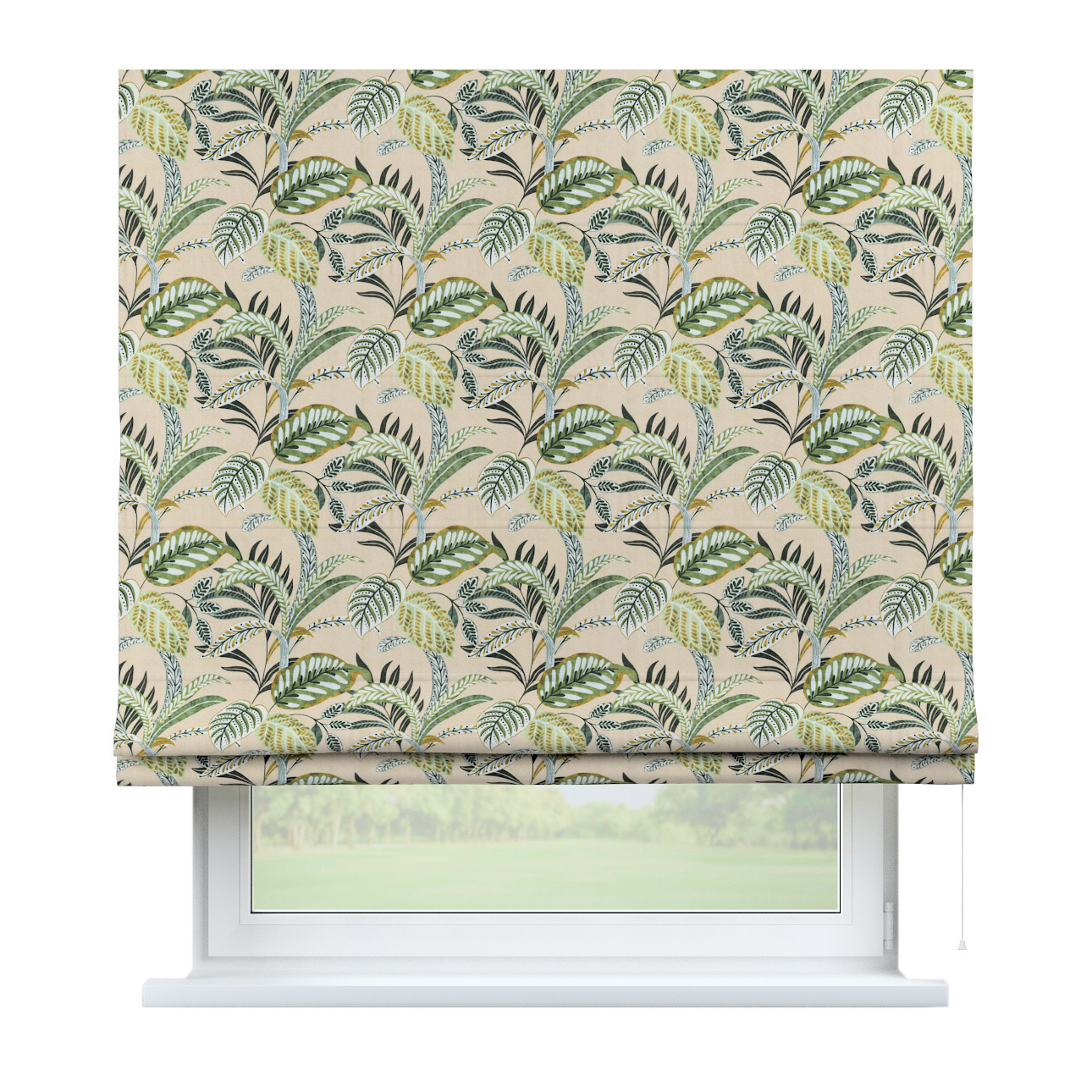 Rímska Roleta Bari, olivovozelené kvety na ľanovom podklade, Tropical Island, 142-96