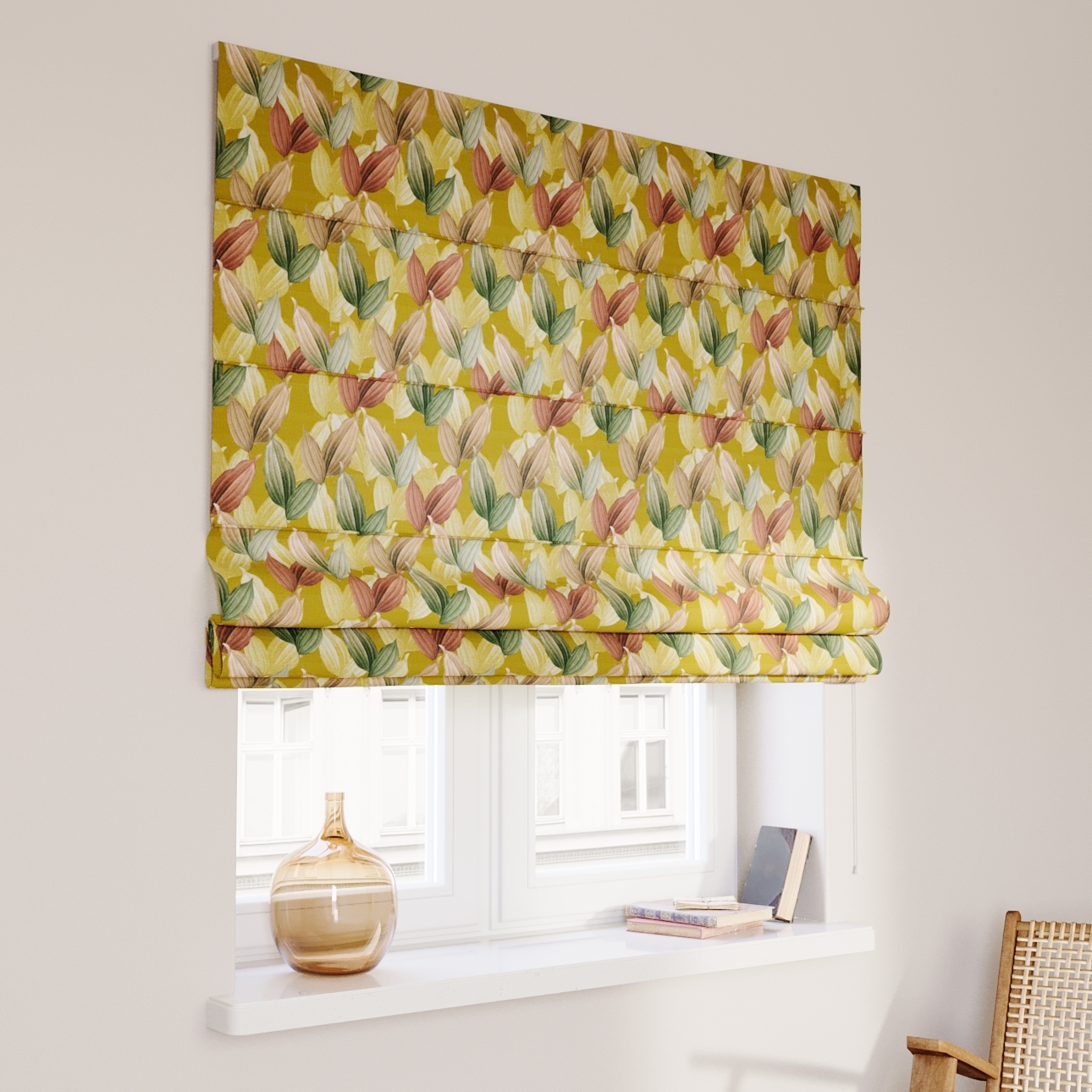 Rímska roleta Capri, farebné lístie na horčicovom podklade, Abigail, 143-22