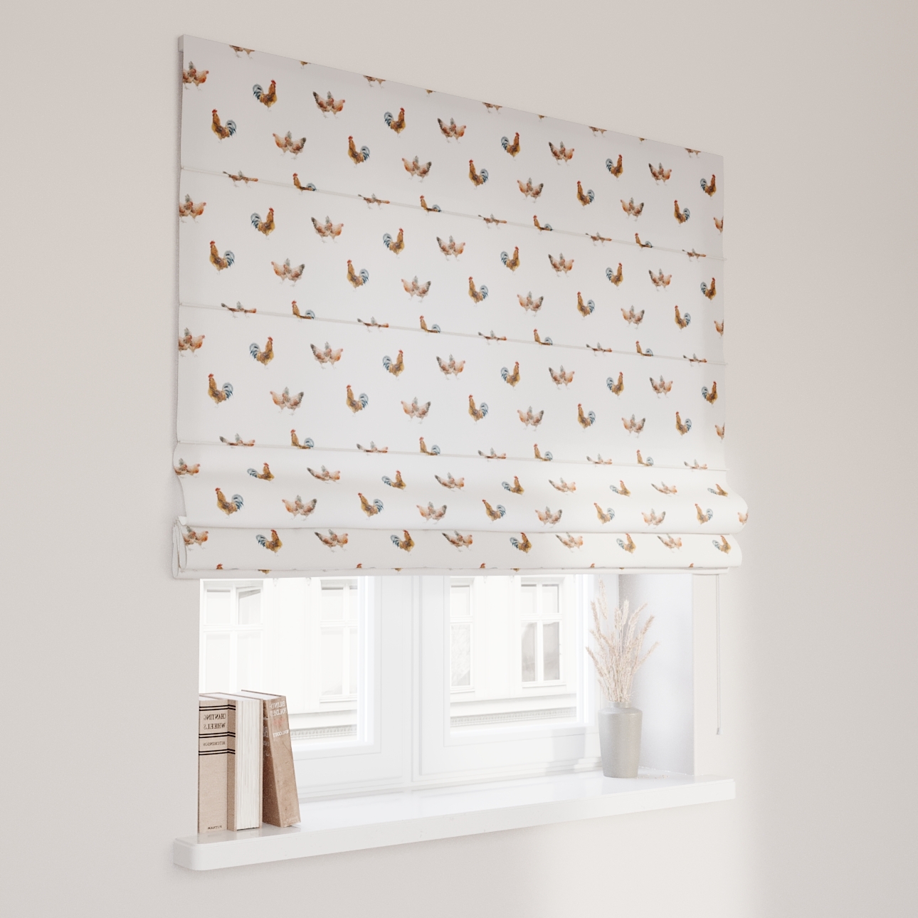 Rímska roleta Capri, hnedé kohúty na krémovom podklade, Flowers, 141-80