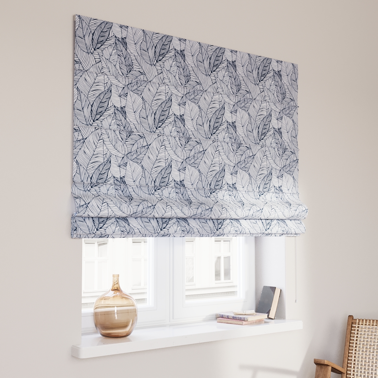 Rímska roleta Capri, Hvid med mørkeblå, Velvet, 704-34