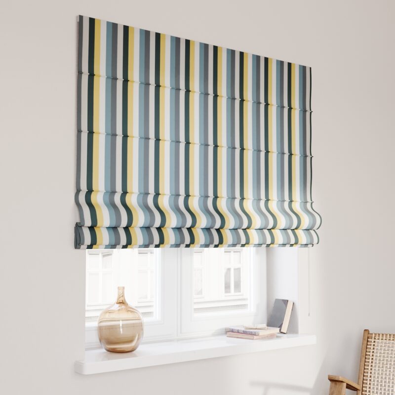 Rímska roleta Capri, pásy v odtieňoch žlto-hnedo-modrých farbách, Vintage 70’s, 143-59