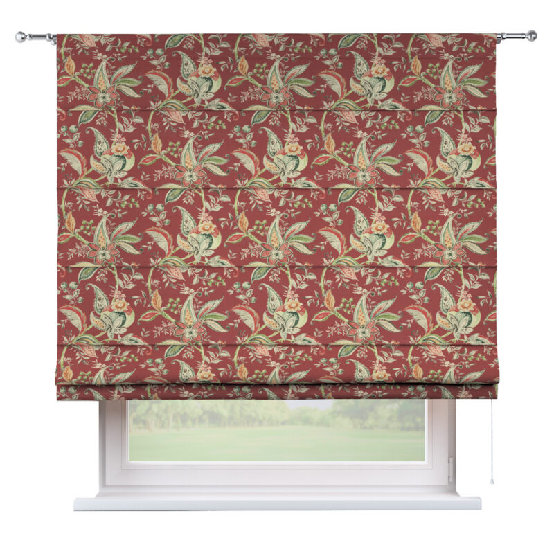 Rímska roleta Torino, kvetinové vzory na pozadí z tehlovo-červenom podklade, Gardenia, 142-12