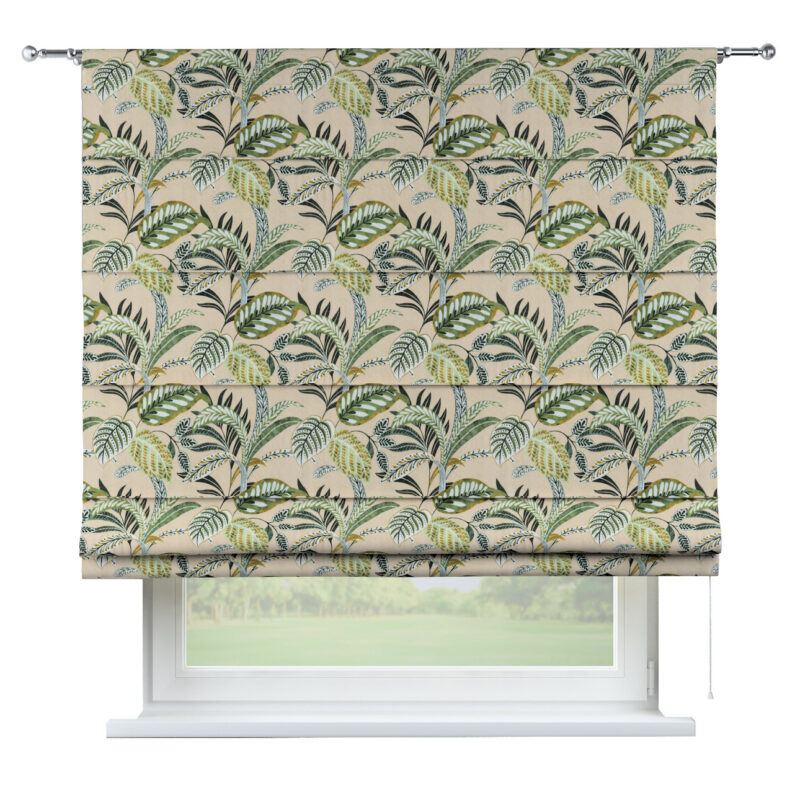 Rímska roleta Torino, olivovozelené kvety na ľanovom podklade, Tropical Island, 142-96