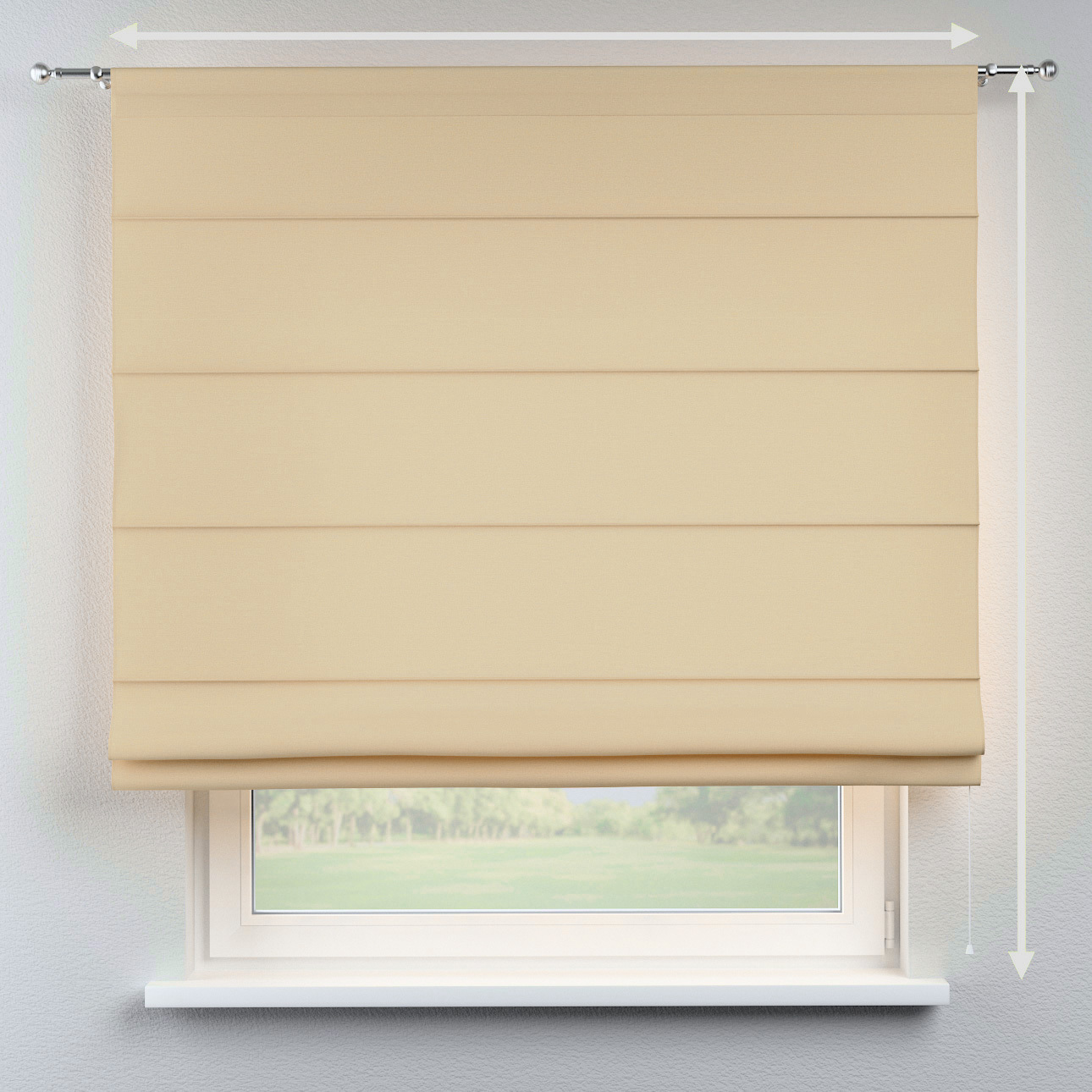 V cene rolety je zahrnutý mechanizmus + montážne príslušenstvo. Maximálne vytiahnutá rímska roleta má výšku okolo 30-35 cm, čo je potrebné zohľadniť pri výbere miesta pri montáži.
