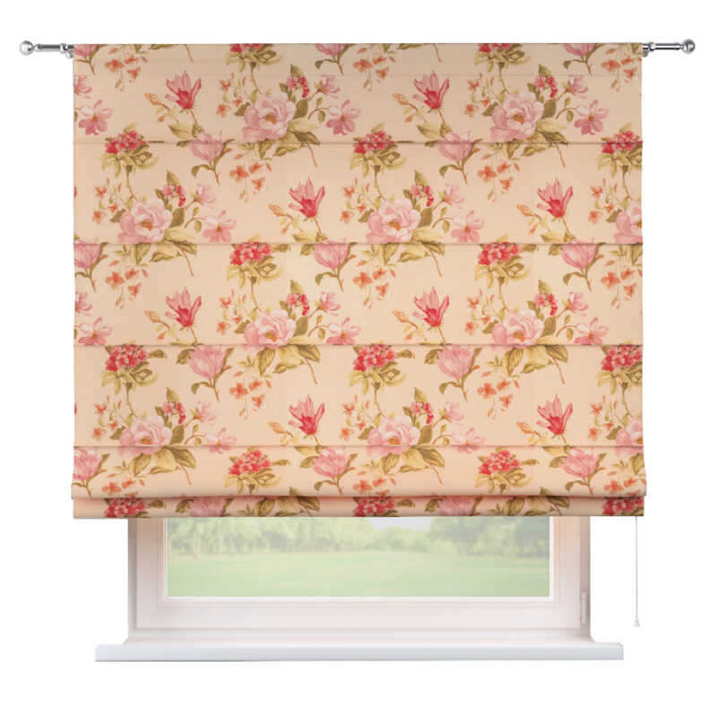 Rímska roleta Torino, výrazný vzor ružovozelené kvety na ľanovom podklade , Londres, 143-87