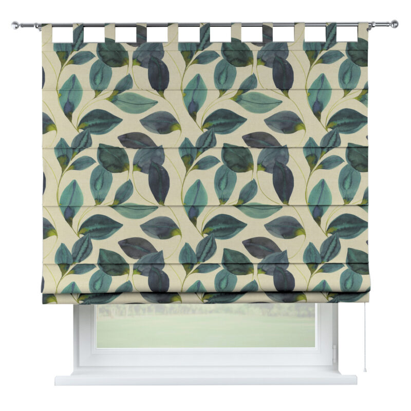 Rímska roleta Verona, smaragdovo – zelené listy s fialovým nádychom na plátne, Abigail, 143-15