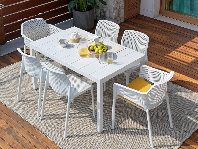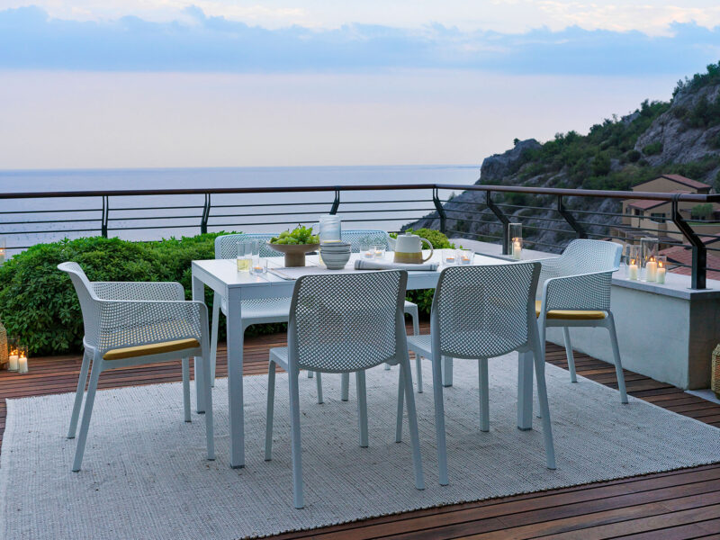 Rozkladací stôl Rio Alu navrhnutý dizajnérom Raffaellom Galiottom, je praktickým prvkom v exteriéri, ktorý je vyrobený z lakovaného hliníka, s patentovaným predlžovacím systémom a odolnosťou voči poveternostným vplyvom. Je ideálnym pre záhrady a terasy reštaurácií.