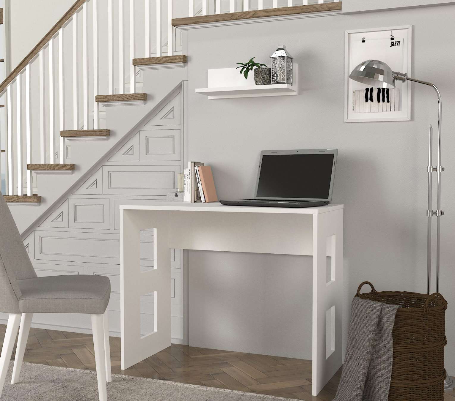 Písací stôl ROBINEPredstavujeme vám písací stôl ROBINE, ideálnu voľbu pre vašu kanceláriu alebo detskú izbu. Tento štýlový a kompaktný stôl je navrhnutý tak, aby vám poskytol pohodlné a efektívne pracovné prostredie s moderným škandinávskym nádychom.Typ tovaru: Písací stôlVhodné do miestnosti: Kancelária a detská izbaMateriál: LTDRozmer: 90 x 73.8 x 45 cmFarba: BielaŠtýl: ŠkandinávskyVzhľad: MaláTvar: ObdĺžnikovýZostava obsahuje: Písací stôl (š90 x h45 x v74 cm), nástenná polica (š45 x h16,3 x v14,5 cm)Hrúbka materiálu: 18 mmDodatočné informácie: Dodávame v demontePísací stôl ROBINE je vyrobený z kvalitného LTD materiálu s hrúbkou 18 mm, čo zaisťuje jeho pevnosť a dlhú životnosť. Elegantná biela farba dodáva stolu moderný a čistý vzhľad, ktorý sa hodí do akéhokoľvek interiéru. Zostava obsahuje nielen praktický písací stôl, ale aj nástennú policu, ktorá rozširuje úložné možnosti a pomáha udržať váš pracovný priestor organizovaný.Dodávame v demonte, čo znamená, že stôl a police ľahko zložíte podľa priloženého návodu. Písací stôl ROBINE je perfektnou voľbou pre každého, kto hľadá štýlový a funkčný nábytok do svojej kancelárie alebo detskej izby.