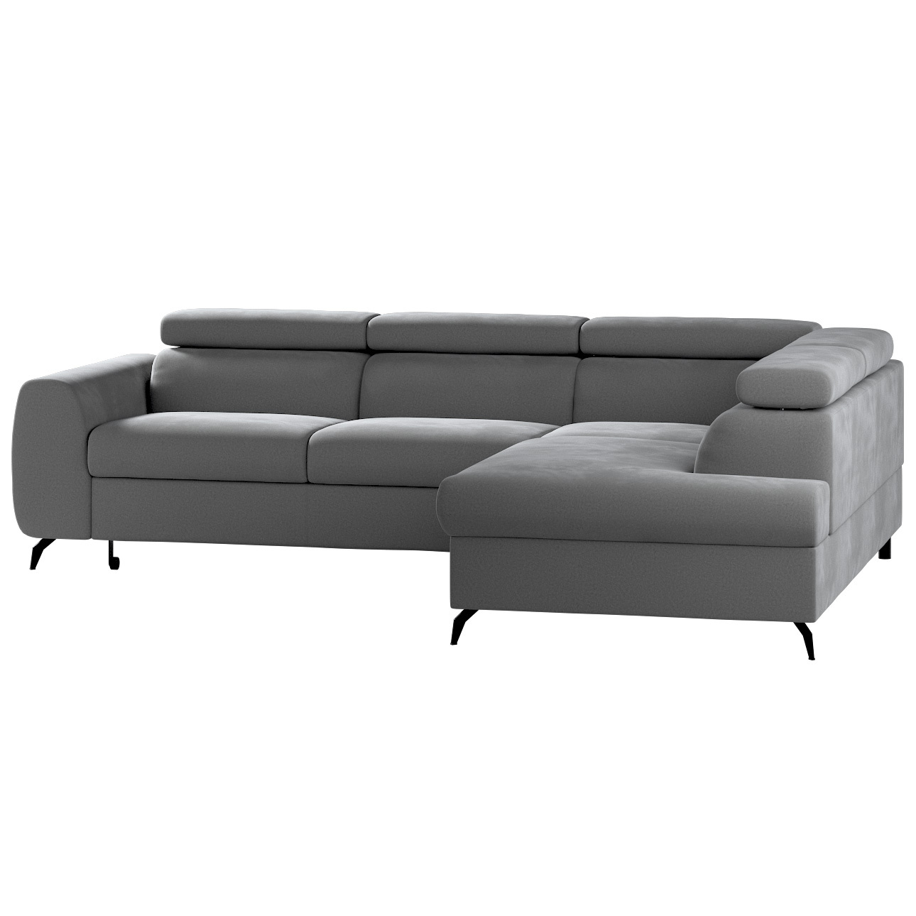 Elegantná rohová pohovka s funkciou spania.Rozkladacia pohovka Leo je návrhom pre každú obývaciu izbu zariadenú v modernom štýle. Vynikajúci dizajn podčiarkujú jeho jednoduché, ale výrazné línie. Rohová pohovka s funkciou spania vám umožní relaxovať cez deň aj večer, pretože po rozložení vytvorí rovnú a pohodlnú plochu na spanie. Ideálne do obývačky alebo izby pre hostí.Päť nezávisle nastaviteľných opierky hlavy umožňuje najlepšie možné prispôsobenie. Pohodlné sedadlo a operadlo zaručujú komfort. Kovové nohy s originálnym tvarom dodávajú moderný nádych.Rohová pohovka Leo je k dispozícii v širokej škále farieb látok. Môžete ho ľahko zladiť s interiérom. Rohová pohovka má nádobu na lôžkoviny.Rozmery: šírka 268 cm, hĺbka 201/98 cm, výška 77-93 cm.Povrch na spanie: 125 x 200 cm.Výplň: vlnité pružiny, profilované pružiny, vysokoplastická pena.Farba nôh: čierna.Materiál nôh: kov.Mechanizmus: typ delfín.Dostupné verzie: ľavá a pravá.Vyrobené v Poľsku.Výrobok na objednávku. Nie je možné ho vrátiť.