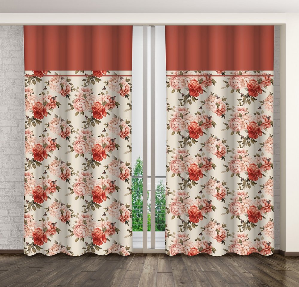 Romantický krémový záves s potlačou červených ruží Dĺžka: 270 cm