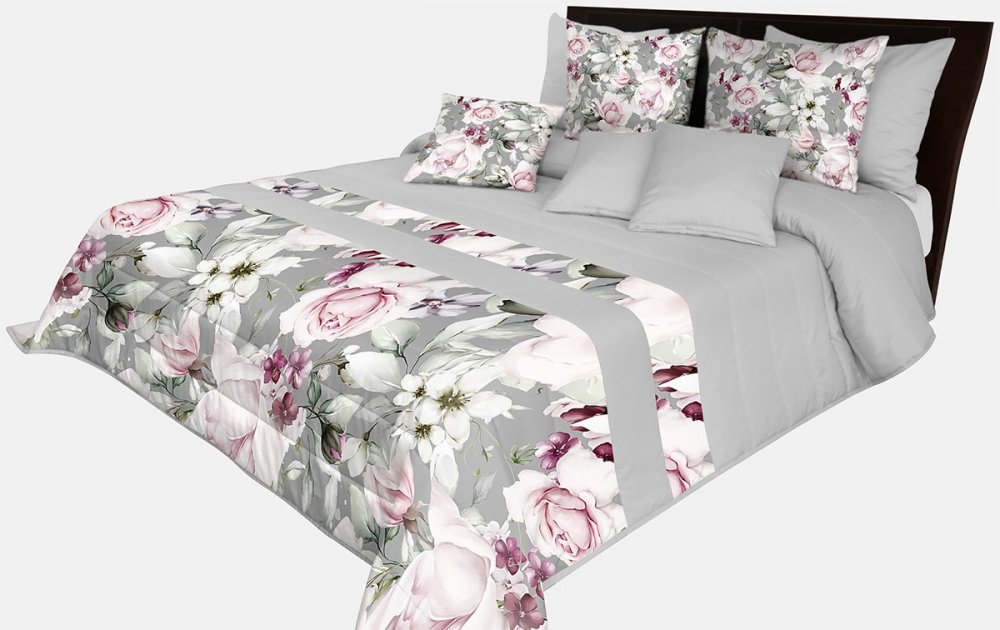 Romantický prehoz na posteľ v šedej farbe s nádhernými ružovými kvetinami rôznych druhov Šírka: 170 cm | Dĺžka: 210 cm Šírka: 170 cm | Dĺžka: 210 cm