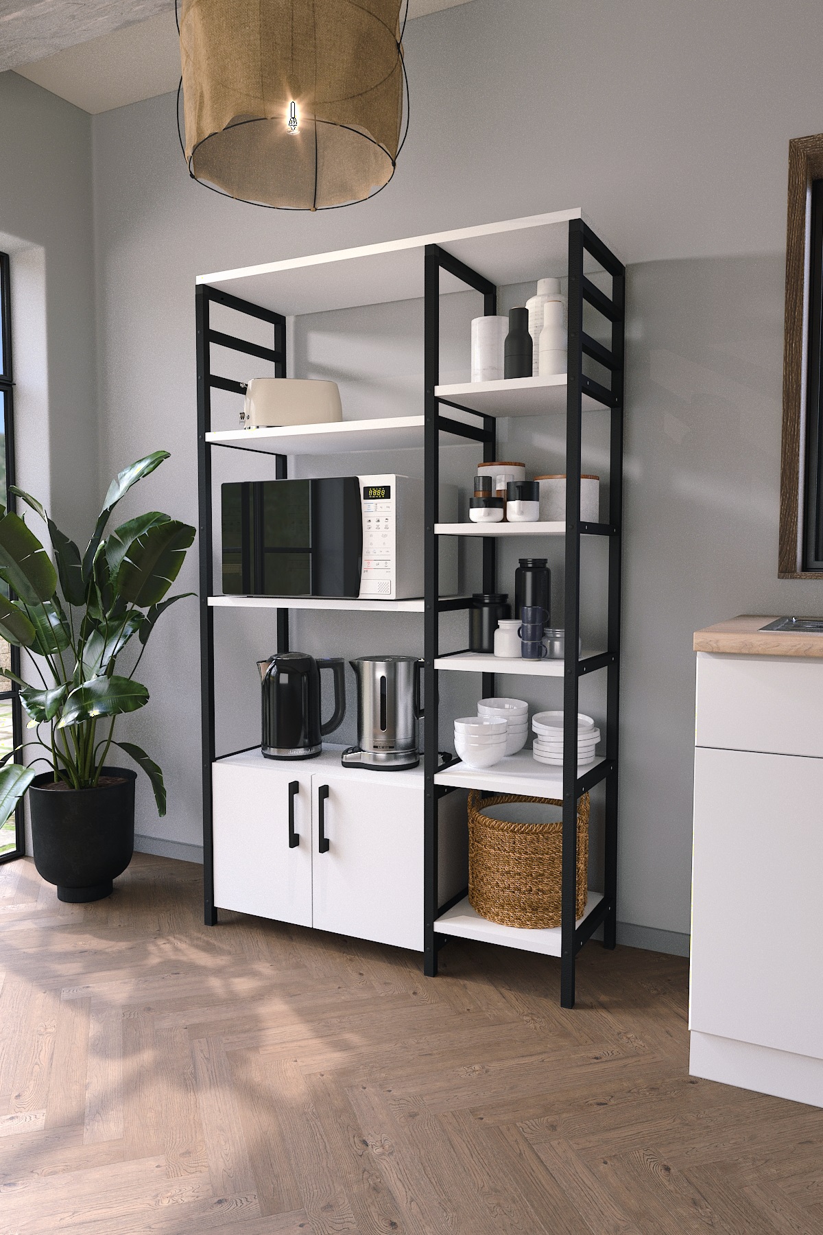 RONSE kuchynský stojan 5-políc 2 dvierka, biela / čierna