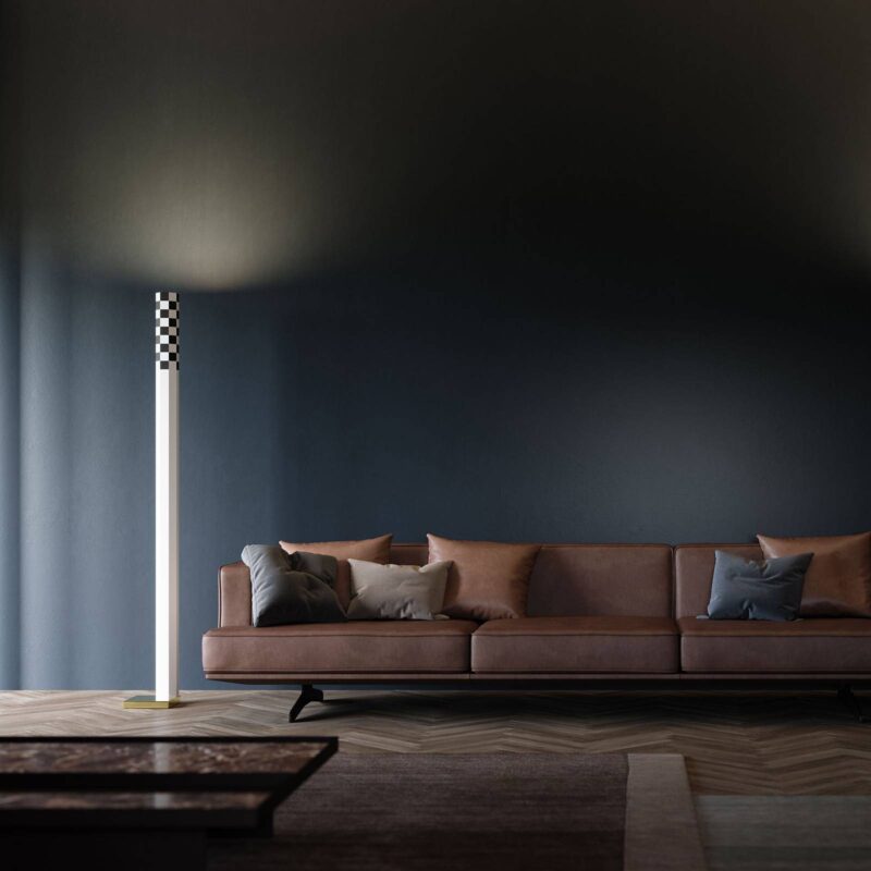 Šesťuholníková stojacia lampa LED Ciminiere d’Italia s pútavým čiernobielym vzorom Pútavým prvkom stropného svietidla LED Ciminiere d’Italia je šesťuholníkový stĺp, ktorý nie je umiestnený uprostred, ale v rohu zlatej základnej dosky. Napriek podlhovastému tvaru a asymetrickému umiestneniu stĺpika na základnej doske je pozoruhodné, že táto stojacia lampa nestráca stabilitu, ale stojí pevne a robustne na podlahe. Nápaditý je aj šachovnicový čiernobiely vzor, ktorý zdobí hornú štvrtinu lampy. Ciminiere d’Italia je vyrobená z vysokokvalitného liateho hliníka. Farebná kombinácia s lesklým zlatým základom, bielym stĺpikom a čiernobielym vzorom je výborne zvolená a pôsobí vznešene a moderne zároveň. Okrem toho je reflektor Ciminiere d’Italia LED vybavený kvalitnými a jasnými LED diódami, ktoré ponúkajú relatívne prirodzené podanie farieb. Okrem toho má stojacia lampa nožný stmievač, ktorý sa nachádza na prívodnom potrubí. Stojacia lampa Ciminiere-d’Italia pripomína priemyselné komíny, ktoré sa týčia vysoko nad strechami Talianska a sú súčasťou krajiny s výraznými vzormi. Aj keď sú dnes väčšinou vyradené z prevádzky, čo teší najmä ochrancov životného prostredia, stále vyžarujú istý pôvab a rozprávajú o časoch minulých. Tím dizajnérov Donegani