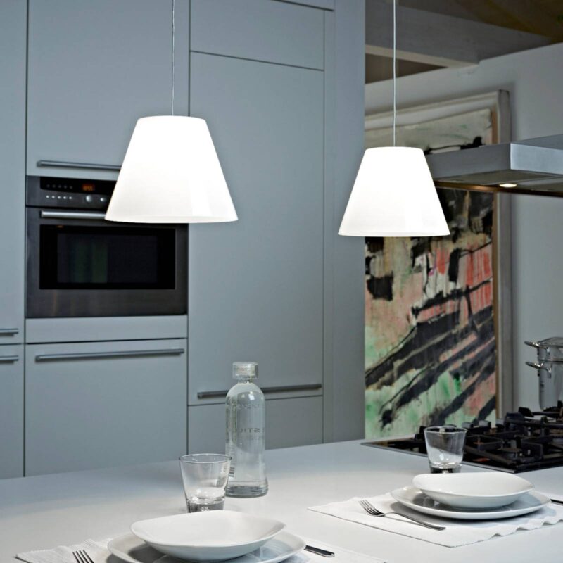Minimalistické dizajnové závesné svietidlo Dina s modernou LED technológiou Keď sa dvaja talianski dizajnéri dajú dokopy a vytvoria lampu pre výrobcu so sídlom v Taliansku, môže z toho vzniknúť iba jedna vec: absolútny skvost. A tým je závesné svetlo Dina LED skrz na skrz. Dizajn od Giovanniho Laudu a Danteho Doneganiho sa vyznačuje predovšetkým minimalizmom. Polykarbonátové tienidlo závesnej lampy Dina je na jednej strane nadčasovým zdrojom svetla, na druhej strane je tiež senzačným pútačom pozornosti, ktorý je možné ľahko zakomponovať do najrôznejších štýlov. Integrovaný svetelný zdroj bol vybavený najnovšou LED technológiou. S 3 000 Kelvinmi získate príjemné svetlo v jemnej teplej bielej farbe. Po zapnutí si subtílny dizajn Diny skutočne príde na svoje.