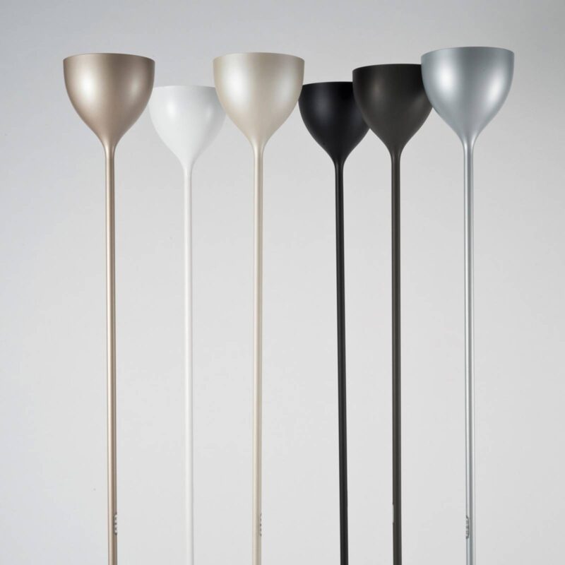 Vysoká LED stojaca lampa Nápoj v puristickom tvare pohára Táto stojaca lampa okamžite odhaľuje model, ktorý inšpiroval dizajnérov Giovanniho Laudu a Dante Doneganiho, keď prišli s týmto konceptom. Hliníková stojaca lampa Drink je štýlový nepriamy zdroj svetla pre vysoko kvalitné interiéry. Nápoj má tvar kalicha s nepomerne dlhou stopkou. Vďaka tiene, ktorá je hore otvorená, je všetko svetlo z LED vyžarované smerom k stropu. Jas je možné regulovať pomocou spínača integrovaného v páčke.