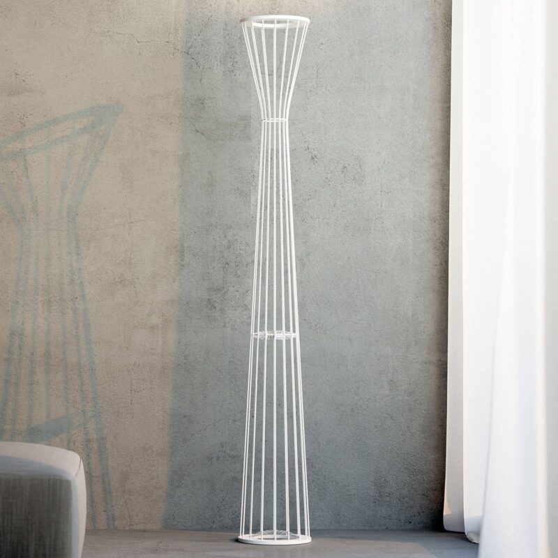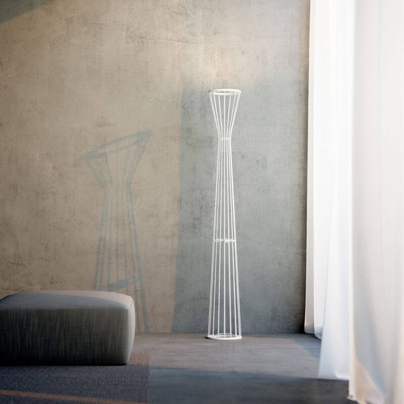 Lightwire F1 – LED dizajnová stojacia lampa s dotykovým stmievačom LED stojacia lampa pozostávajúca z tenkých bielych železných tyčí, ktorú vytvorili dizajnéri Donegani