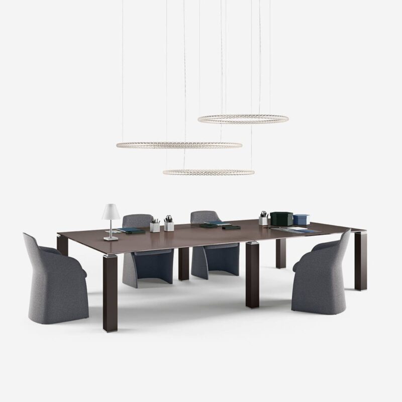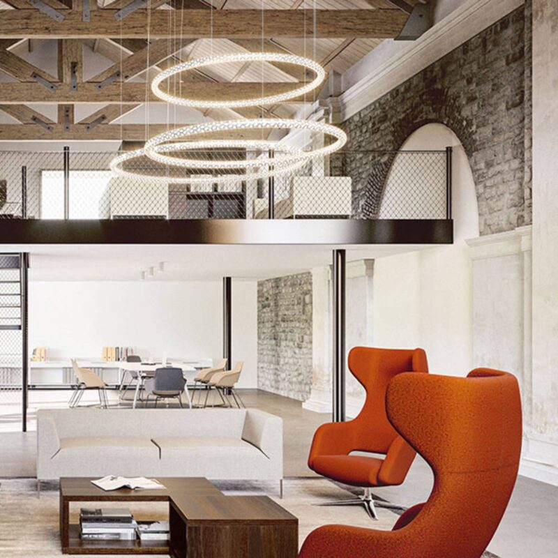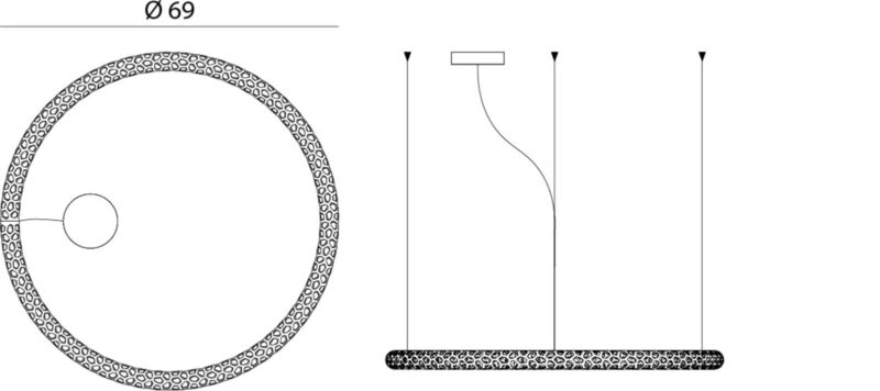 Kruhové LED dizajnové závesné svetlo Squiggle Tvar a štruktúra matného bieleho príveskového svietidla Squiggle pripomína zaveseného hada. Hliník je ozdobený súvislým šesťuholníkom, cez ktorý dopadá teplé biele svetlo LED. Vďaka rovnomernému zrnu svetlo prúdi do všetkých strán miestnosti a poskytuje tak osvetlenie na každej strane. Vďaka dlhému zaveseniu je závesné svietidlo vhodné aj na obzvlášť vysoké stropy, ako aj na schody alebo do vstupných priestorov, aby ich bolo možné holisticky osvetliť. Dizajnér Paolo Rizzatto bol už od útleho detstva nadšený „neónovou štruktúrou“ pre IX. Trienále v Miláne od Lucia Fontanu. Tu boli na strope vyčarované dlhé zdobené čiary so zakrivenými neónovými trubicami. Aby si splnil svoj detský sen, Rizzatto ich vytvoril Závesná lampa Squiggle spárovaná s vysoko kvalitnými LED diódami, čo v preklade znamená Kringel. Rizzato je predovšetkým známy pre severotalianskeho výrobcu osvetlenia Rotaliana pre svoje zaoblené motívy.