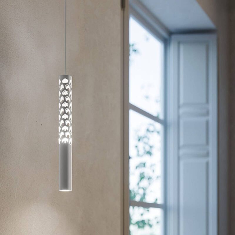 Jednolamelové závesné svietidlo Squiggle LED so šesťuholníkovým vzorom Pútavým prvkom pre každú miestnosť je jednotný veľký vzor vyrazený na hornej polovici hliníkového tienidla v tvare tyče. Vďaka tomu je závesné svietidlo Squiggle vynikajúce na bodové osvetlenie, napríklad na stoly, ale aj prvotriedne na dodatočné osvetlenie okolia, pretože horný vzor vyžaruje svetlo aj do miestnosti. Squiggle možno kombinovať s viacerými svietidlami tohto druhu a montovať ich v rôznych výškach. Taliansky dizajnér Paolo Rizzatto sa inšpiroval umeleckým dielom Lucia Fontanu „Neonová štruktúra“ pre IX. Trienále v Miláne. Rizzatto je ďalším skúseným dizajnérom, na ktorého sa spolieha severotaliansky výrobca Rotaliana. Rizzatto bol už niekoľkokrát nominovaný na taliansku cenu za priemyselný dizajn „Compasso d’oro“.
