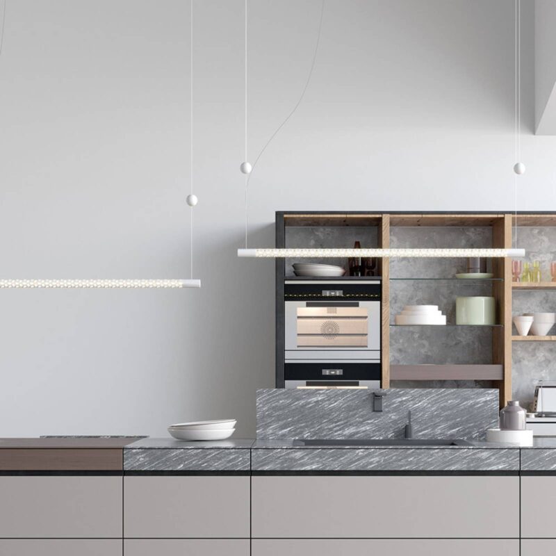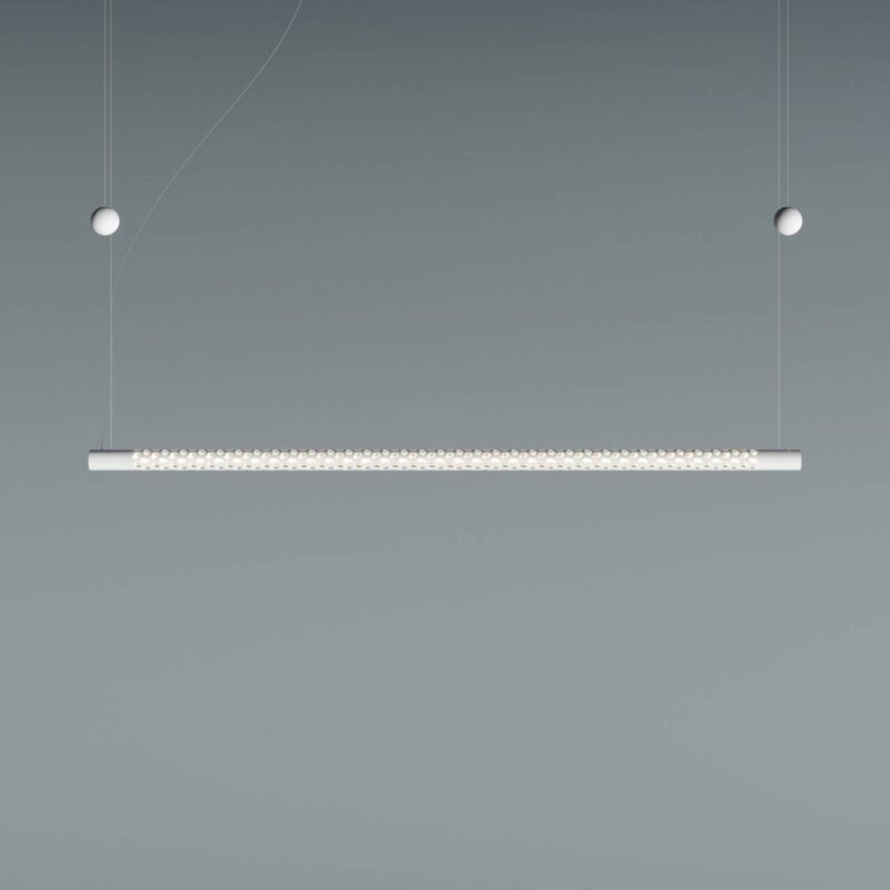 Elegantné LED závesné svetlo Squiggle – dokonalá kombinácia emócii a užitočnosti Závesná lampa Squiggle visí dole na jemných, sotva viditeľných povrazoch a zdá sa, akoby plávala v priestore. tienidlo na lampu tvorí úzka trubica, ktorá je vyrobená výhradne z hliníka a má vo vnútri teplé biele LED diódy. Trubica visí vodorovne a pokrýva veľkú plochu, ktorú je schopná osvetliť vďaka svojej špeciálnej emisii svetla. Početné malé šesťuholníky sú rozmiestnené po celom kryte, ktoré sú vyrazené do tienidlo na lampu a vytvárajú príťažlivý, individuálny vzor. Svetlo týmito otvormi vychádza všade naokolo a vyvoláva atmosférické svetelné efekty. Okrúhly baldachýn je udržiavaný v rovnakej farbe ako lampa, čo harmonicky dopĺňa celkový obraz. Rovnako ako dve gule vľavo a vpravo, ktoré slúžia ako akési protizávažia. Squiggle je ideálny na osvetlenie stola a dá sa použiť aj na veľké a dlhé stoly. Vďaka vysokému indexu podania farieb umožňuje, aby okolie vyzeralo vo veľmi prirodzených farbách. Taliansky dizajnér Paolo Rizzatto už vytvoril množstvo diel pre známych výrobcov dizajnérskych svetiel. To je prípad aj série Squiggle od spoločnosti Rotaliana, ktorá sa teraz skladá z veľkého množstva rozmanitých variantov. Rotaliana vkladá do všetkých svojich projektov určitú dávku „osvetových“ vlastností, prostredníctvom ktorých sa intuitívne uchopujú a odhaľujú nové riešenia pre každodenný život. Dôraz je kladený na jednoduché, veľmi zámerne zvolené línie, ktoré v kombinácii s mimoriadnymi dizajnovými tvarmi stoja v neúprosnom vzájomnom porovnávaní formy a funkcie.
