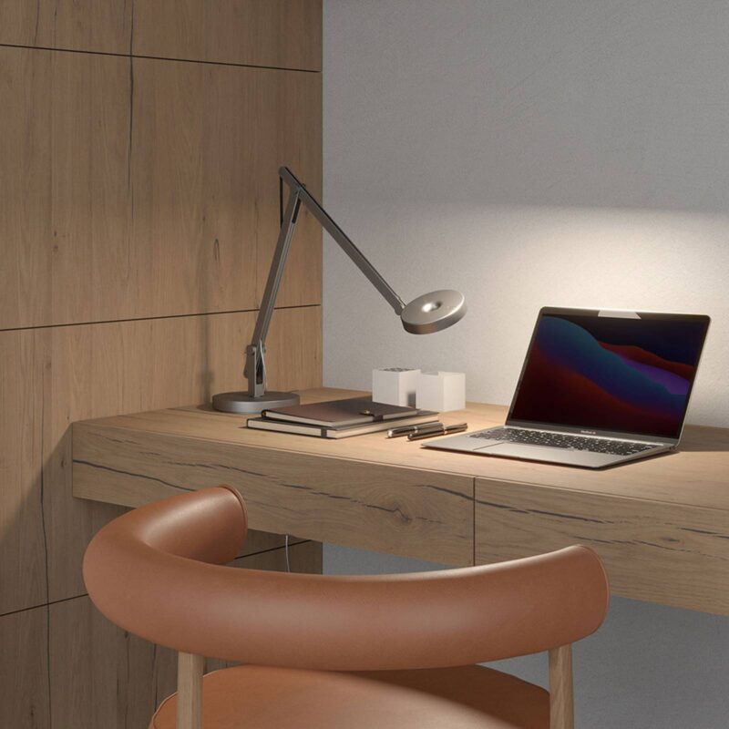 Priestorovo úsporná stolná LED lampa String Mini T1 DTW – s funkciou stmievania a zahrievania Rovnako ako strana na nástroji je textilný kábel stolnej lampy natiahnutý do profilov hliníkového rámu, ktoré slúžia na flexibilné nastavenie svetelného zdroja. Kábel je obzvlášť efektívny pri ohýbaní svietidla. Malá hlavica má v strede okrúhlu priehlbinu a práve tu sa nachádza aj dotykový stmievač, ktorým možno svetlo zapínať a vypínať a tiež znižovať jas. Technológia stmievania do teplého svetla nielen znižuje svetlo, ale aj vytvára ešte teplejší efekt zmenou jasu. Funkcia stmievania sa dá použiť napríklad aj na vytvorenie vizuálnej zmeny z práce a služby na popracovnú náladu. Funkciou dim-to-warm (stmievanie do tepla) dvaja vynálezcovia Dante Donegani a Giovanni Lauda opäť okorenili svoj dizajn String Mini. Moderný dizajn sa dobre hodí do súčasného prostredia, ako je kancelária, hotelová izba alebo aj vlastná domáca pracovňa.