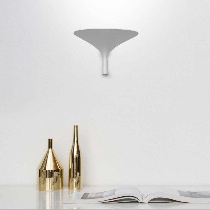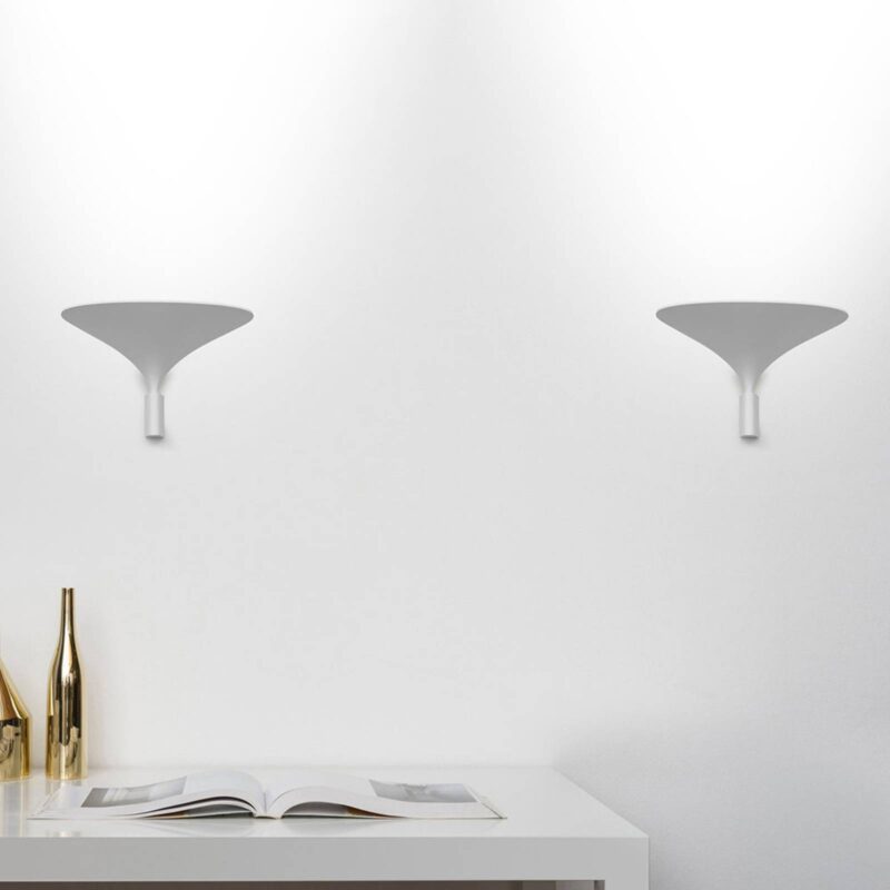 Jemné LED nástenné svetlo Sunset vyrobené z matného bieleho hliníka Toto LED nástenné svetlo Sunset od talianskej spoločnosti Rotaliana, elegantné svetlo do predsiene a obývacej izby, ale aj do vstupných priestorov a izieb v hoteloch . Jemná nástenná konzola sa neskôr objaví na širokej zakrivenej tienidlo na lampu , výsledkom je otvorená horná časť , Čelná tienidlo na lampu v tvare kužeľa, ktorá končí ako vydutý lievik v nástennej konzole. Svetelný zdroj nie je priamo viditeľný a je vložený do vydutia. Výsledkom je nepriame, teplé biele svetlo, ktoré je vyžarované smerom nahor na veľkú plochu a atmosféricky osvetľuje stenu. Tak sa vytvorí homogénne osvetlenie bez oslnenia, ktoré jemne osvetlí miestnosť. – Stmievateľné stmievačom fázového rezu Túto modernú lampu navrhol Paolo Dell’Elce. Špecialista na nábytok a svietidlá, ktorý vedie tím návrhárskeho nábytku v Miláne a študoval priemyselný dizajn. Jeho práce boli publikované na medzinárodnej úrovni a získali ceny a uznania, napríklad Red Dot Award. Rotaliana s každým výrobkom stelesňuje výsledky dlhej cesty, v ktorej je svetlo považované za jeden zo štyroch základných parametrov komfortu bývania a v ktorom sa spája krása, jedinečnosť a praktickosť.