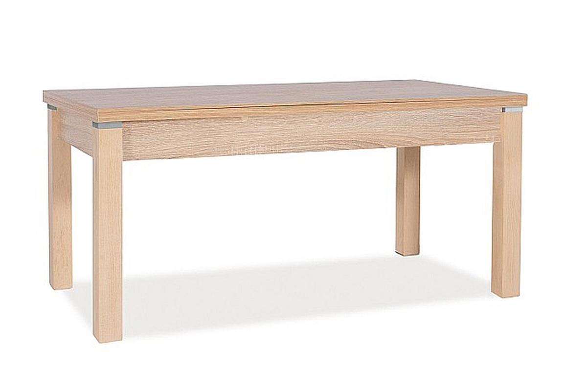 Rozkladací jedátenský stôl Cleopa. Stolík je možné i výškovo nastaviť. Vrchná doska stola je vyrobená z LTD dosky, nožičky sú drevené. Farebné prevedenie dub sonoma. Stôl je možné rozšíriť až o 40 cm. Rozmer stola (v/š/h) 56-75cm x 124-164 x 64 cm. Dodávame v demonte. V ponuke i v odtieni orech a wenge.