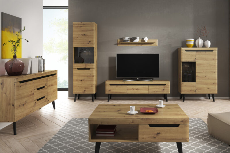 Zaujímavý obývací sektor NORD je vynikajúcim riešením do moderného interiéru. Vďaka svojmu unikátnemu a štýlovému vzhľadu bude Vaša obývačka vyzerať sviežo a jasne. Súčasťou sektoru NORD je elegantný rozkladací stôl PST140. Ponúkame ho vo farebnom prevedení dub artisan. Maximálna šírka rozkladu je 180 cm. Stôl má štýlové vysoké nožičky čiernej farby. Vyrobený je z kvalitných a ľahko udržiavateľných LTD dosiek s ABS hranami. Rozmery: – šírka: 140-180 cm, – výška: 76 cm, – hĺbka: 80 cm. Dodávame v demonte, pričom montáž je jednoduchá.